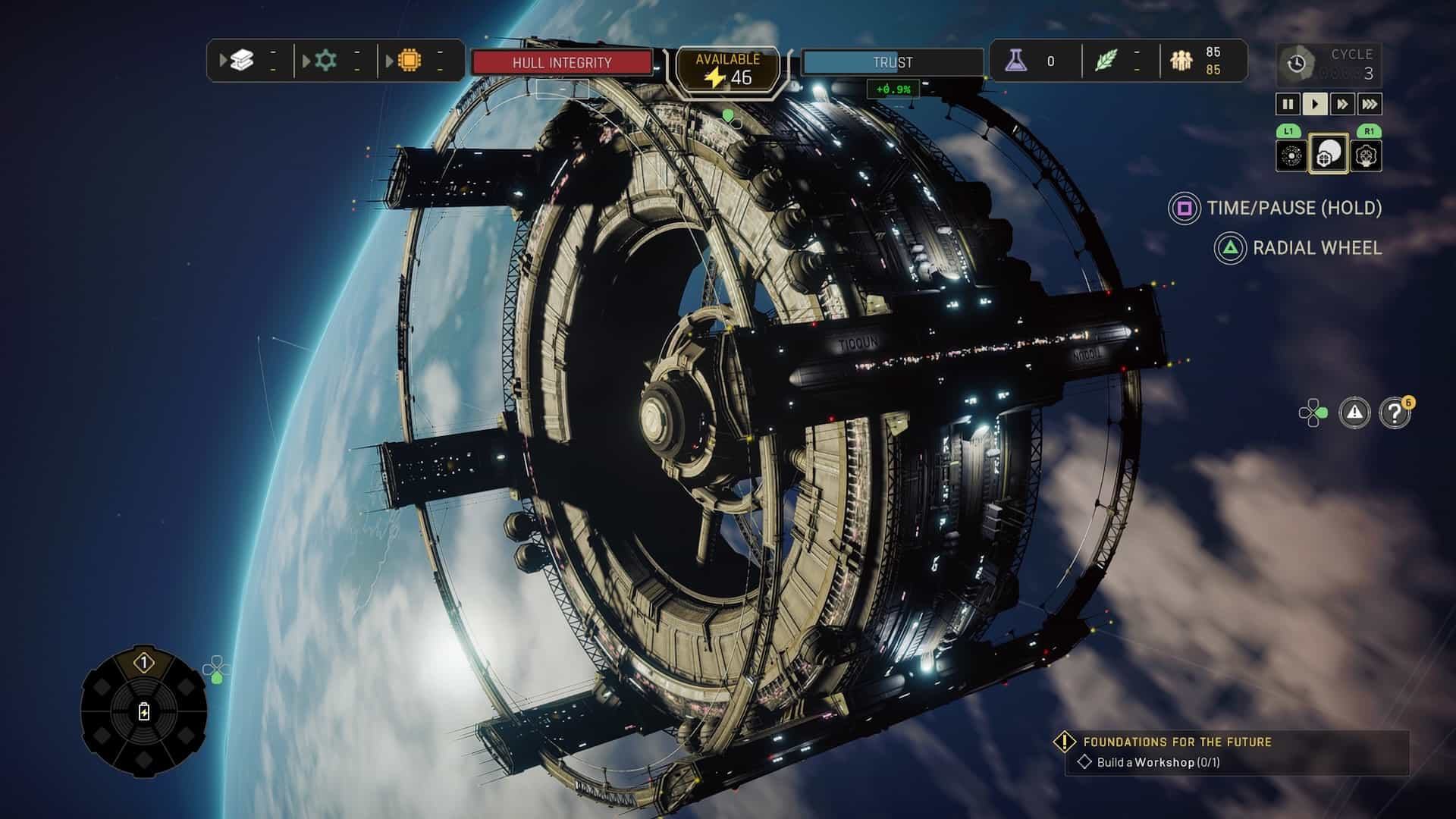 IXION to przede wszystkim city builder w środowisku zamkniętym — stacja kosmiczna to miejsce, w którym musimy zaspokoić potrzeby populacji, produkować zasoby, zarządzać energią, a także eksplorować otaczający wszechświat. Rozgrywka składa się z dwóch głównych warstw.