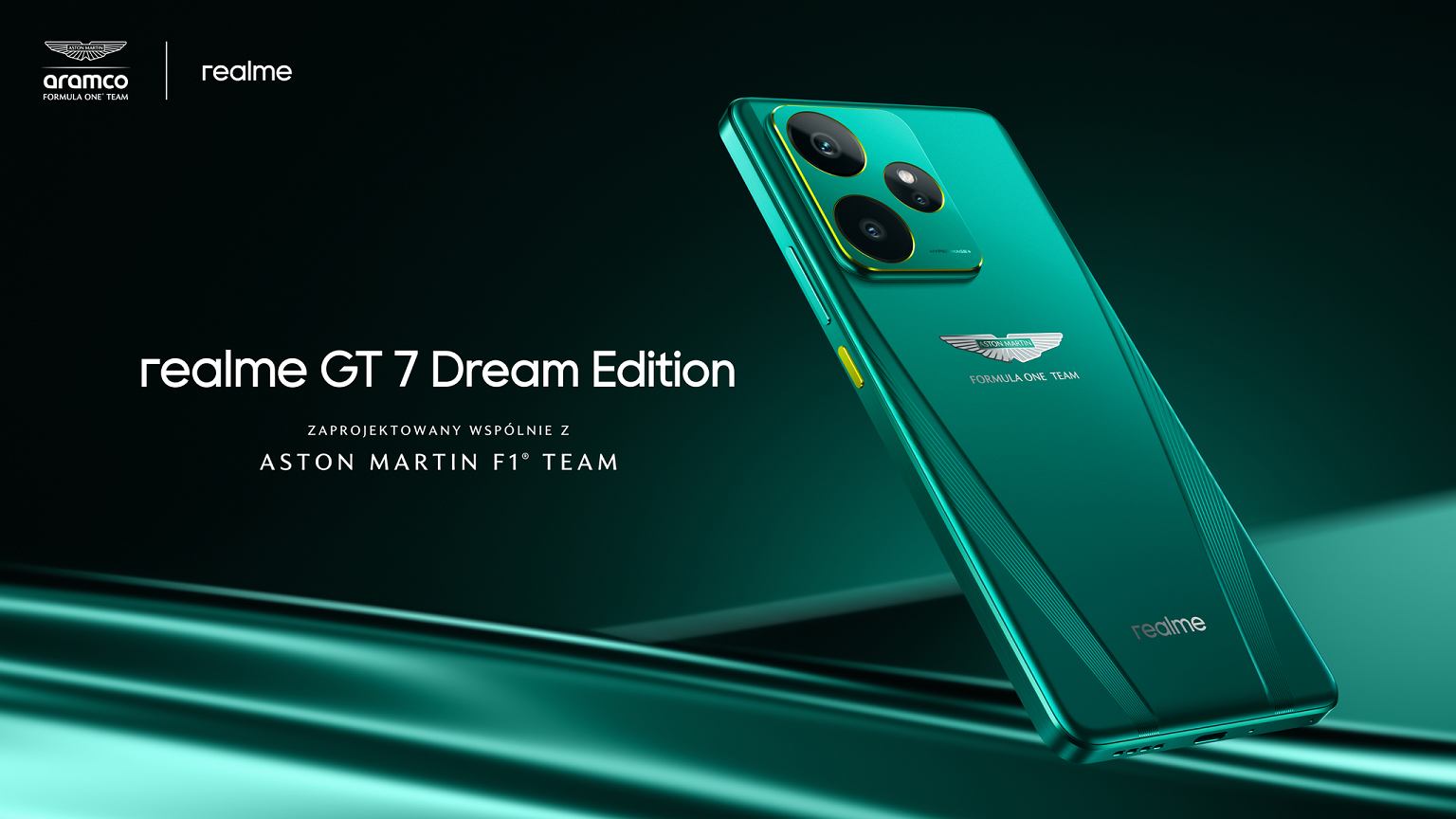 Firma realme zaprezentowała dziś serię GT 7 wraz z modelem realme Dream Edition. Opracowano go we współpracy z zespołem Aston Martin Aramco F1.