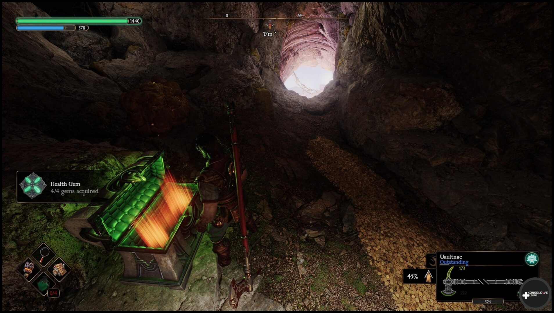 Kryształy te bynajmniej nie są jedynymi znajdźkami, które możemy odnaleźć. Aran może też natrafić między innymi na specjalne krypteksy (które podnieść musi chłopak – Aranowi brak odpowiednich umiejętności). Dzięki nim zwiększymy skuteczność, czy maksymalną liczbę mikstur leczniczych. Nie można także zabraknąć o odblokowywaniu coraz bardziej wytrzymałych broni konkretnego typu. Oczywiście o ile wykujemy odpowiednio dopracowany oręż. Ponadto możemy go pokazywać tajemniczym posągom, co pozwoli odblokować nowe komponenty do danego typu broni. To też nie koniec dostępnych znajdziek, ale absolutnie nie będę tu przytaczał wszystkich. Mogę Was natomiast zapewnić, że są one świetnie osadzone w świecie gry i zdecydowanie zachęcają do zaglądania we wszelkie zakamarki.
