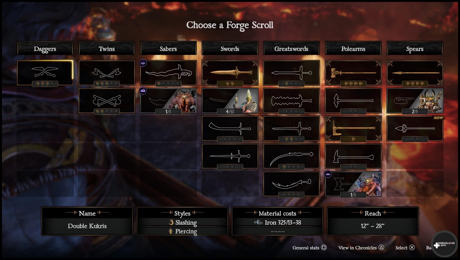 Blades of Fire jest bardzo mocno osadzone w kowalstwie, co daje naprawdę świetny efekt. Na początku gry zostaniemy zapytani, z jakiego metalu jesteśmy zrobieni. Możemy wybrać brąz, srebro lub stal, co przekłada się na coraz wyższe poziomy trudności. Pokonując wrogów, będziemy zdobywali surowce, a te możemy przekuć w broń. Po odnalezieniu i aktywowaniu kowadła w świecie gry możemy wybrać jedną z kilku dostępnych opcji – udanie się do Kuźni. Gdy się na to zdecydujemy, minie kilka sekund, po czym znajdziemy się w starożytnej kuźni. Tu możemy podejść do specjalnego stołu, a następnie wybrać rodzinę broni, jaką chcemy wytwarzać. Znajdziemy tu między innymi topory, sztylety, miecze (w różnych kształtach i rozmiarach), młoty, czy włócznie. Na małą różnorodność na pewno nie ma co narzekać. Warto zaznaczyć, że kolejne schematy odblokowujemy w miarę pokonywania nowych wariantów przeciwników.