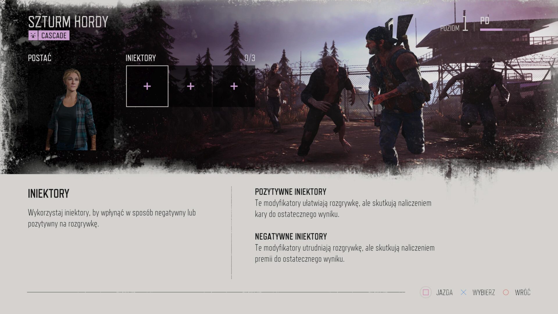 Główną atrakcją Days Gone są walki z hordami zarażonych, które nawet w 2025 roku dostarczają wielu emocji. Każde takie starcie wymaga starannego przygotowania, skupienia, zaopatrzenia się w najlepszą broń, tworzenia materiałów wybuchowych, mądrego rozmieszczania min i innych pułapek. W zremasterowanej wersji walki z hordami otrzymały osobny tryb, który nazwano Szturm Hordy. Walczymy tam z większymi, coraz trudniejszymi hordami zarażonych. Oczywiście próbując przetrwać tak długo, jak to możliwe. W ramach postępów rozgrywki odblokujemy nowe mapy, zaczynamy w Cascade, następnie możemy zagrać na Belknap, Lost Lake i Creater Lake. Tuż przed rozpoczęciem starcia możemy wybrać trzy iniektory, czyli pozytywne i negatywne modyfikatory rozgrywki. Pozytywne modyfikacje mają ujemny wpływ na nasz wynik, a negatywne dają boosta do finałowego rachunku. Możemy wybrać przykładowo nieograniczoną kondycję, ale karą za to będzie -20% punktów do ostatecznego wyniku. Z drugiej strony decydując się na brak możliwości tworzenia przedmiotów, otrzymamy +20% do naszego końcowego wyniku.