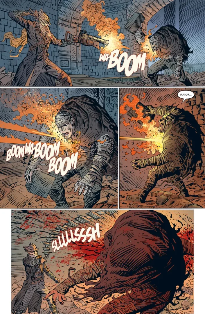 Tom czwarty zawiera tylko 112 stron, więc jest to najmniejsze wydanie z całej serii Łowców Bestii. Jednak sztywna oprawa oraz intensywna opowieść wynagradzają ten bez wątpienia zbyt krótki czas spędzony w Yharnam. Fani dzieła FromSoftware mogą poczuć się, jakby rozgrywali jeden, intensywny rozdział z gry wydanej w 2015 roku. Jak już wspomniałem w poszukiwaniu swojego podopiecznego Gretchen i Abraham trafiają do podziemi. To wielki prastary labirynt wydrążony przez Pthumerian, zwany również grobowcem bogów.