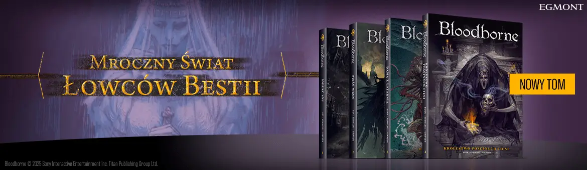 Fani Bloodborne bez wątpienia są w kropce, ich ukochana gra pewnie już nigdy nie doczeka się kontynuacji. Prawa do marki ma PlayStation, jednak nie ma odpowiedniego wykonawcy. Umiejętności i honor są oczywiście po stronie FromSoftware, jednak ci są zajęci własnymi, ambitnymi projektami. 30 maja na duże konsole trafi Elden Ring Nightreign, drużynowa gra z gatunku soulslike. Natomiast pięć dni później — 5 czerwca — na długo wyczekiwaną konsolę Nintendo Switcha 2 trafi port wielkiego hitu FromSoftware Elden Ring Tarnished Edition. Czasu na stworzenie Bloodborne 2 nie ma, tym bardziej że Japończycy pracują nad nową grą The Duskbloods, która ekskluzywnie trafi na Switcha 2 w 2026 roku. Do tego swoją stylistyką mocno przypomina z kultowego Bloodborne z PS4. 25 marca 2025 roku minęło dokładnie dziesięć lat od wydania tego kultowego dzieła. Niestety nie widać ani kontynuacji, ani aktualizacji z 60 FPS-ami na konsole obecnej generacji. Jedynym poszerzeniem uniwersum jest komiks, który trzymam w dłoniach: Bloodborne. Królestwo posępnych cieni. Tom 4 wydany przez Egmont.