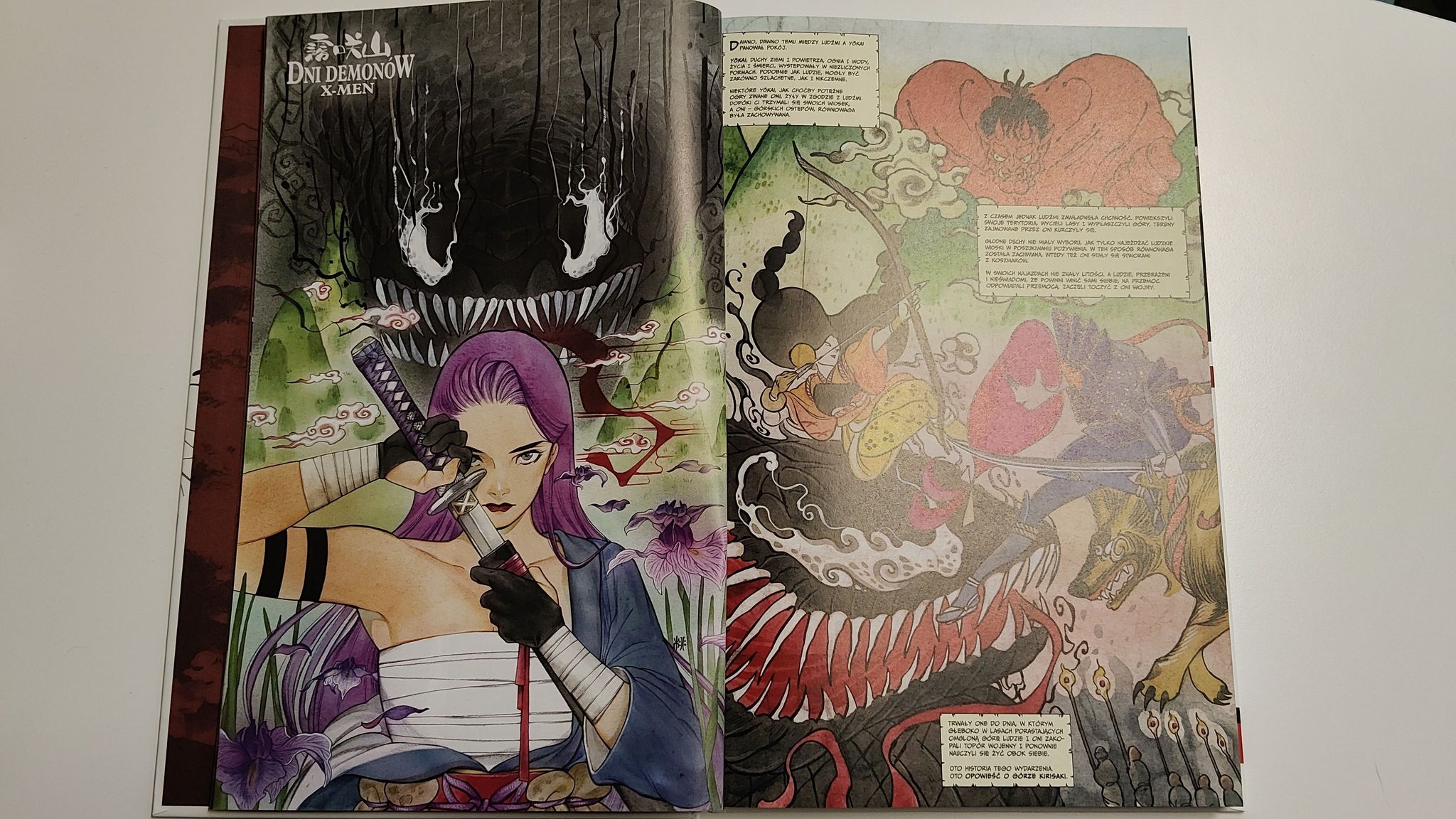 Z jednej strony byłem cały czas ciekaw, w jaki sposób Pech Momoko przedstawi kolejnych bohaterów. A z drugiej historia jest naprawdę wciągająca, nie zwalnia ani na chwilę, trzyma w napięciu do ostatniej strony. Z uniwersum Marvela/X-Menów znalazło się tu miejsce m.in. dla takich postaci, jak choćby Czarna Wdowa, Hulk, Storm, Mistic czy Thor. Zaprezentowanie tych postaci, jako bohaterów feudalnej Japonii wyszło absolutnie fantastycznie. Do tego Pech Momoko w cudowny sposób bawi się mitologią japońską, łącząc demony Oni i Yokai z uniwersum Marvela. Wspomniany na początku wąż – Venom inspirowany jest Orochi, mitycznym stworem z wierzeń ludowych o ośmiu głowach i ośmiu ogonach.