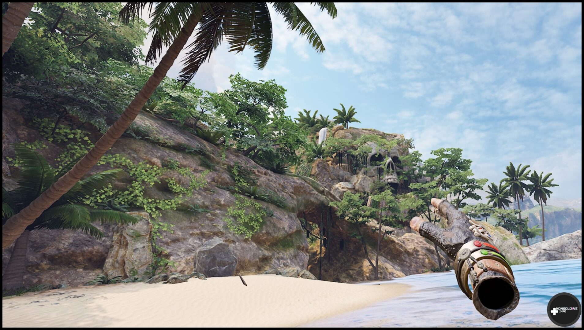 Początkowo zapowiedź świata, który będę przemierzał jako pirat w wirtualnej rzeczywistości jawiła mi się jako niezwykle obiecująca możliwość. Niestety szybko okazało się, że świat ten jest niezwykle mały i niewiele można w nim robić. Kiedy tylko wylądowałem na plaży (i, oczywiście, jak zawsze grach dedykowanych VR) obejrzałem swoje dłonie z każdej strony, postanowiłem zobaczyć, jak będzie wyglądało pływanie. Przed wejściem do oceanu zobaczyłem nawet informację o obsłudze zarówno pływania za pomocą odpowiednich ruchów rąk, jak i zwykłego sterowania kontrolerem. Ochoczo wszedłem więc dalej, zanurkowałem… i okazało się, że nie mogę się dostać do odległej o zaledwie kilka metrów wysepki. Drogę blokowały trujące wodorosty, a kiedy uparłem się i przepłynąłem za nie, to natknąłem się na niewidzialną ścianę.