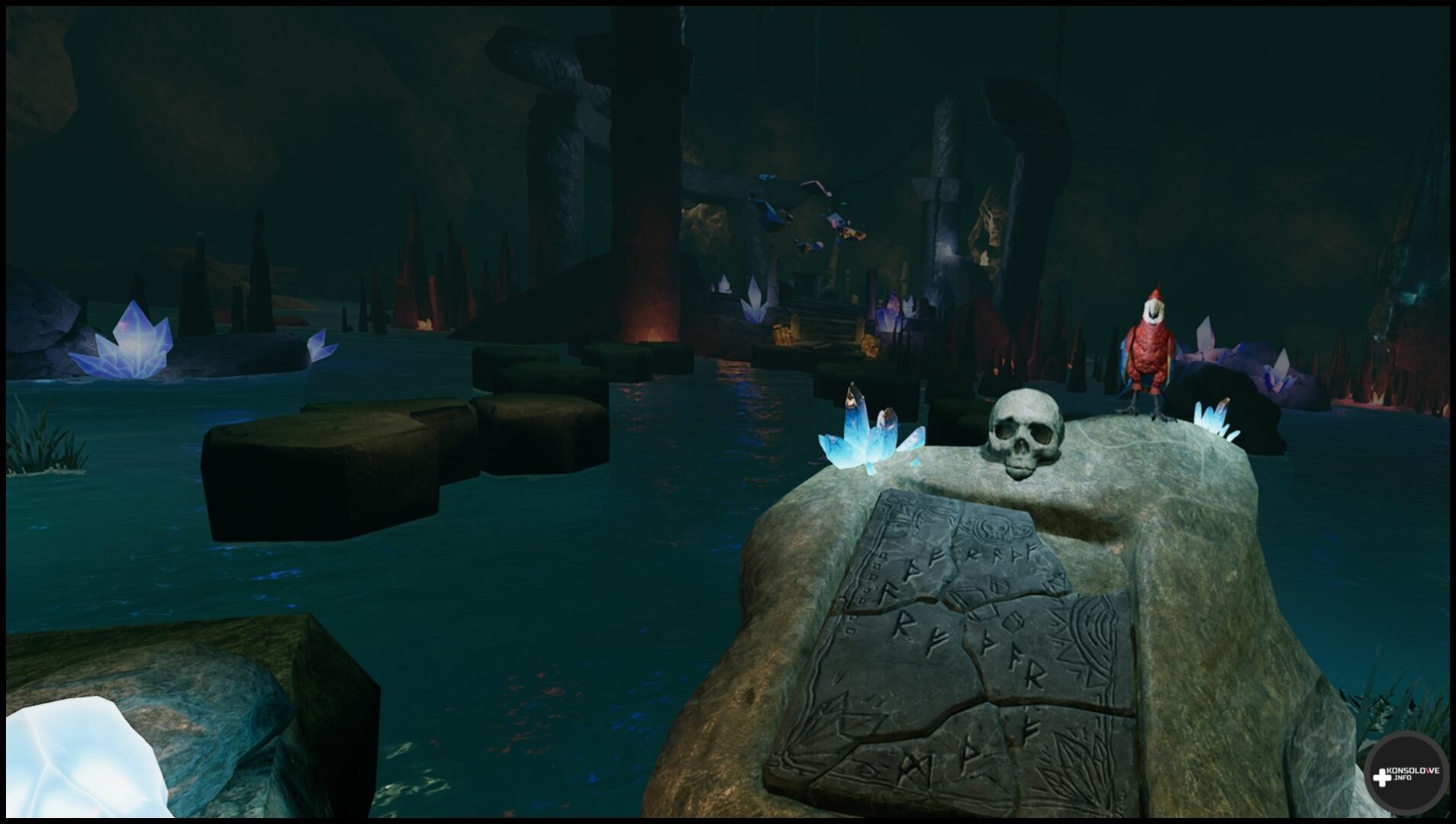 Nie zapomniano naturalnie o sekwencjach nastawionych na wspinaczkę. Sięgamy w stronę półki skalnej i naciskamy przycisk L1 na lewym kontrolerze lub R1 na prawym Sense, by złapać się występu. Na koniec, po dotarciu na szczyt, po prostu chwytamy i przytrzymujemy przez chwilę obie dłonie na krawędzi, a nasz pirat wejdzie na tę półkę. Nie musimy wykonywać zamaszystego ruchu rękami, by się wspiąć. Przyznaję, że bardzo spodobała mi się ta akcja. W niejednej grze w przeszłości musiałem machać, by się wspiąć, ale nie dawało to zamierzonego efektu (moja postać skakała albo puszczała krawędź). W Pirates VR: Jolly Roger nie ma na szczęście tego problemu. Oczywiście zmierzymy się też z przeciwnikami (na przykład ożywionymi szkieletami) oraz rozwiążemy zagadki przestrzenno-logiczne. O ile momenty te mogą zapowiadać się dobrze na papierze, o tyle faktycznie są niesamowicie proste.