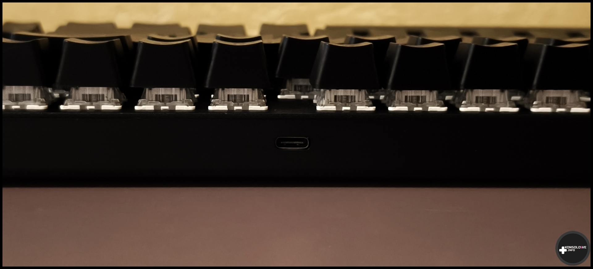 Co jest jedną z najważniejszych cech opisywanego dziś sprzętu, klawiatura jest mechaniczna. W związku z tym każde naciśnięcie klawisza wiąże się z wyraźnym stukotem i trzeba mieć tego świadomość. Nie ma co owijać w bawełnę – testowana dziś klawiatura jest niesamowicie głośna. Choć co prawda napisałem za jej pomocą sporo artykułów, to uważam, ze przez tę głośność absolutnie nie nadaje się ona do pracy biurowej. Zwłaszcza, że zdarzało się – sporadycznie, ale zauważalnie – że jednorazowe naciśnięcie przycisku powodowało jego kilkukrotną aktywację. Na przykład nacisnąłem klawisz „T”, a na ekranie pojawiło się „TTT”. Wobec tego nie da się raczej korzystać z tej klawiatury bez odrywania od niej wzroku.
