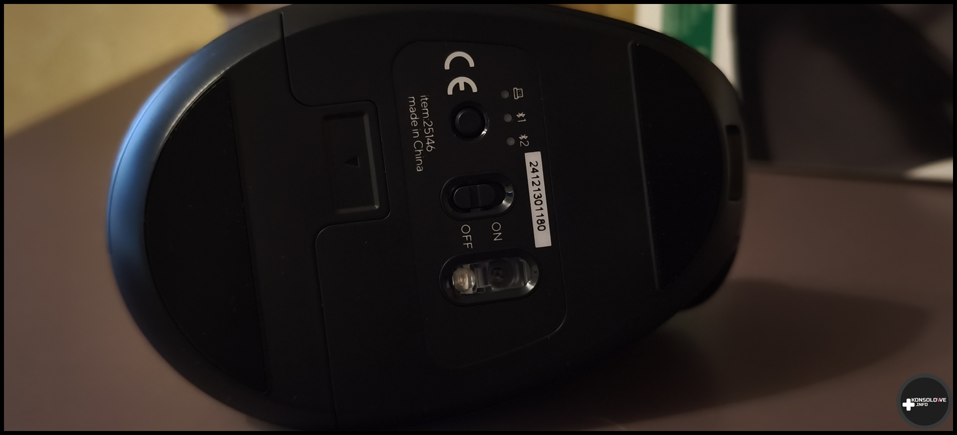 Pozwoli komunikować się testowanemu „gryzoniowi” z pominięciem Bluetooth. Ja jednakże preferowałem właśnie tę formę łączności bezprzewodowej. Zwłaszcza, że myszka zapamiętuje dwa sparowane urządzenia Bluetooth, co – za pomocą przycisku na dolnej części sprzętu – pozwala szybko przełączyć się między powiązanymi urządzeniami. Mogą to być oczywiście komputery, ale nic nie stoi na przeszkodzie. by sparować smartfony. Ja sprawdziłem przede wszystkim łączność z Lenovo legion Go oraz konsolą PlayStation 5. W obu przypadkach myszka sparowała się bardzo szybko i nie mam żadnych zastrzeżeń co do stabilności połączenia. Trzeba jednocześnie odnotować, że z PS5 nie podłączymy myszki bezprzewodowo – wymagany jest wspomniany wcześniej dongiel na USB A.