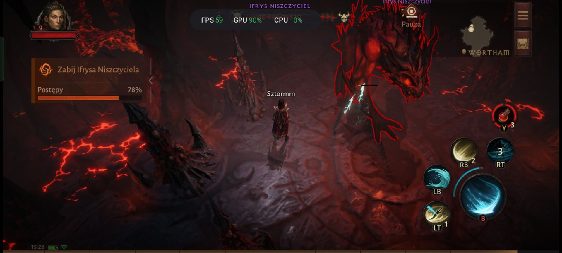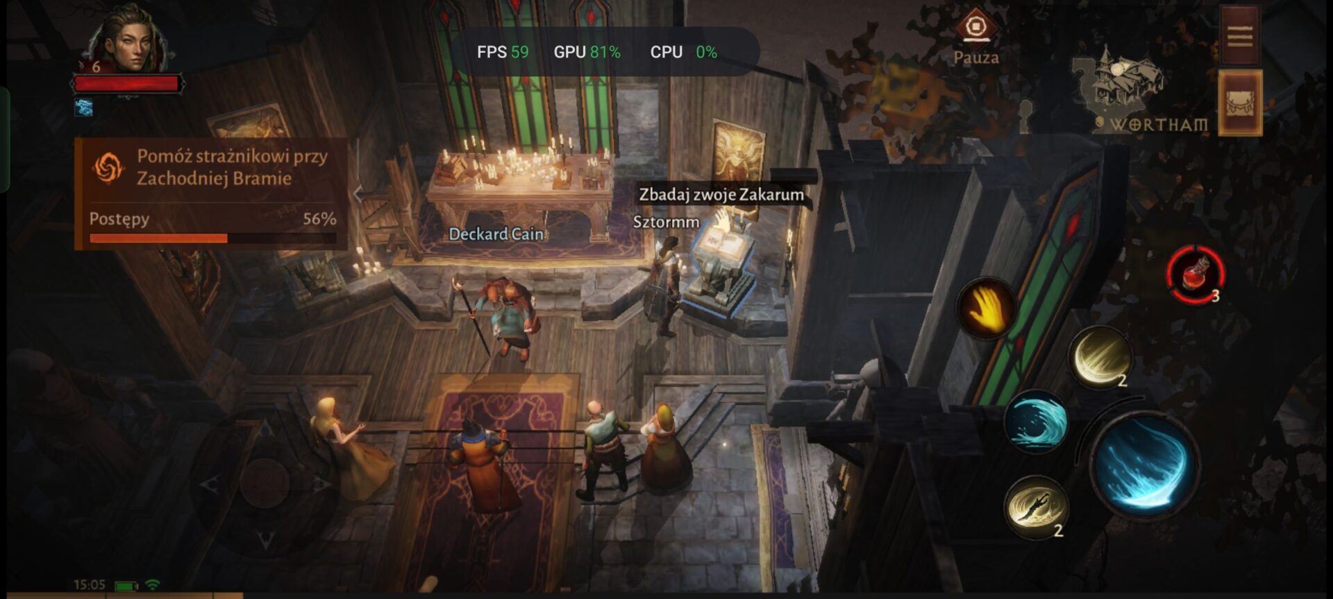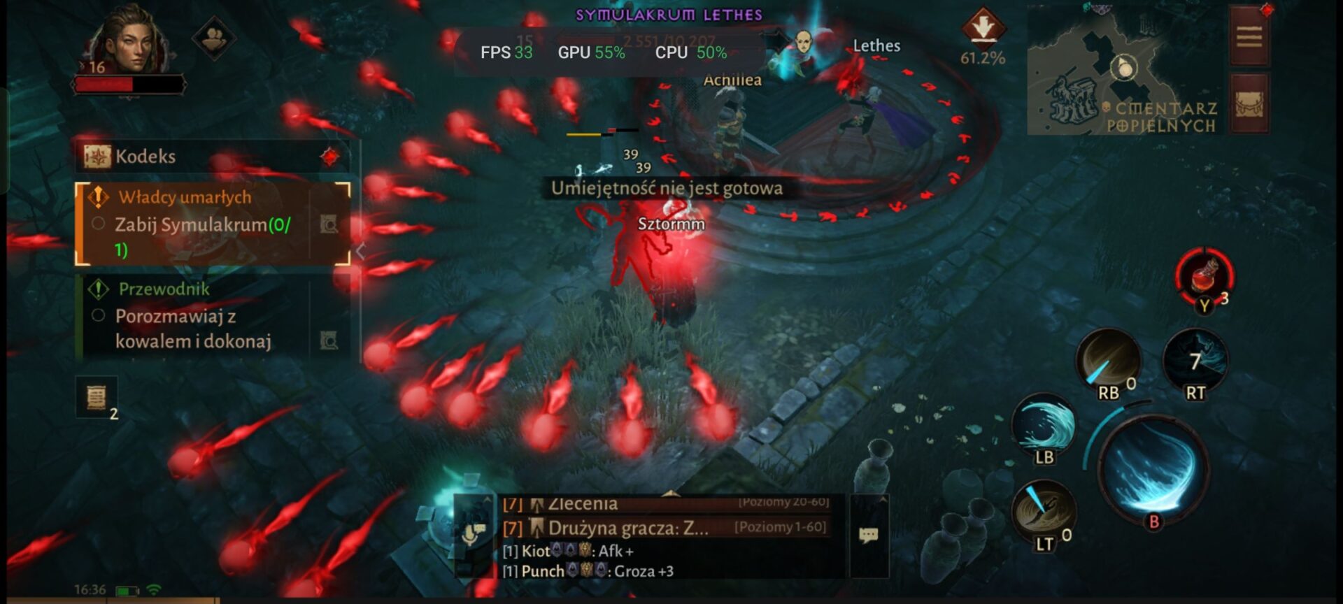 Jedną z ciekawszy gier, jaką konsolowi gracze powinni sprawdzić na smartfonach jest zdecydowanie Diablo Immortal. To wymagający tytuł nawet dla flagowców czołowych producentów, jednak smartfon realme 14 pokazuje, że piekło jest mu absolutnie niestraszne. Pobrałem tekstury HD, ustawiłem liczbę klatek na 60, jakość obrazu na wysoką (jest jeszcze ultra). Do tego w ustawieniach grafiki efekty wizualne ustawiłem na wysoki oraz dałem niską jakość cieni i mgły. Wyłączyłem też śledzenie promieni. Akurat na tych efektach mi nie zależy, więc warto odciążyć trochę sprzęt, który i tak według gry jest maksymalnie wykorzystany.