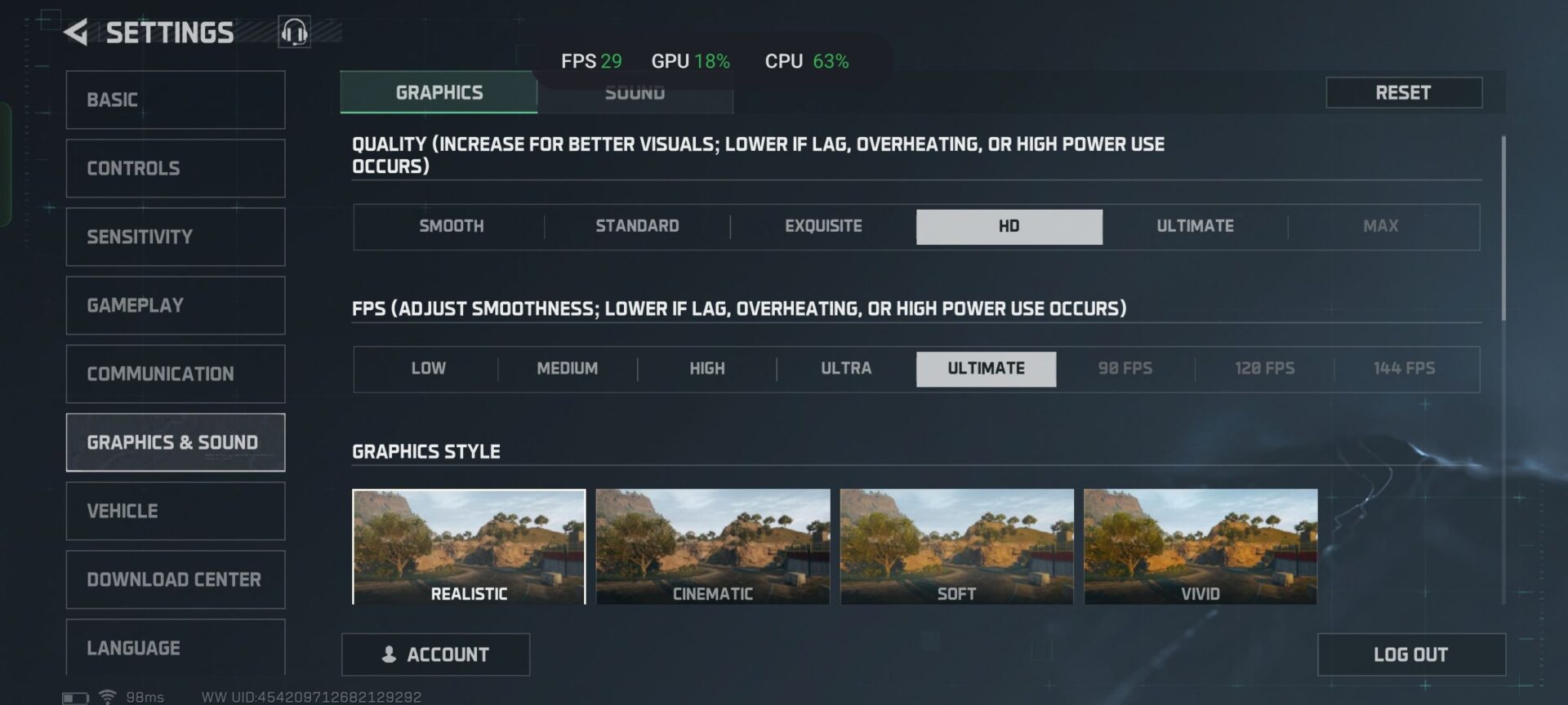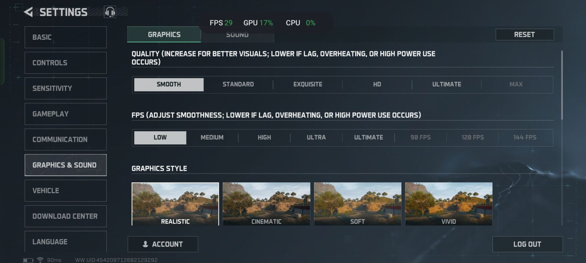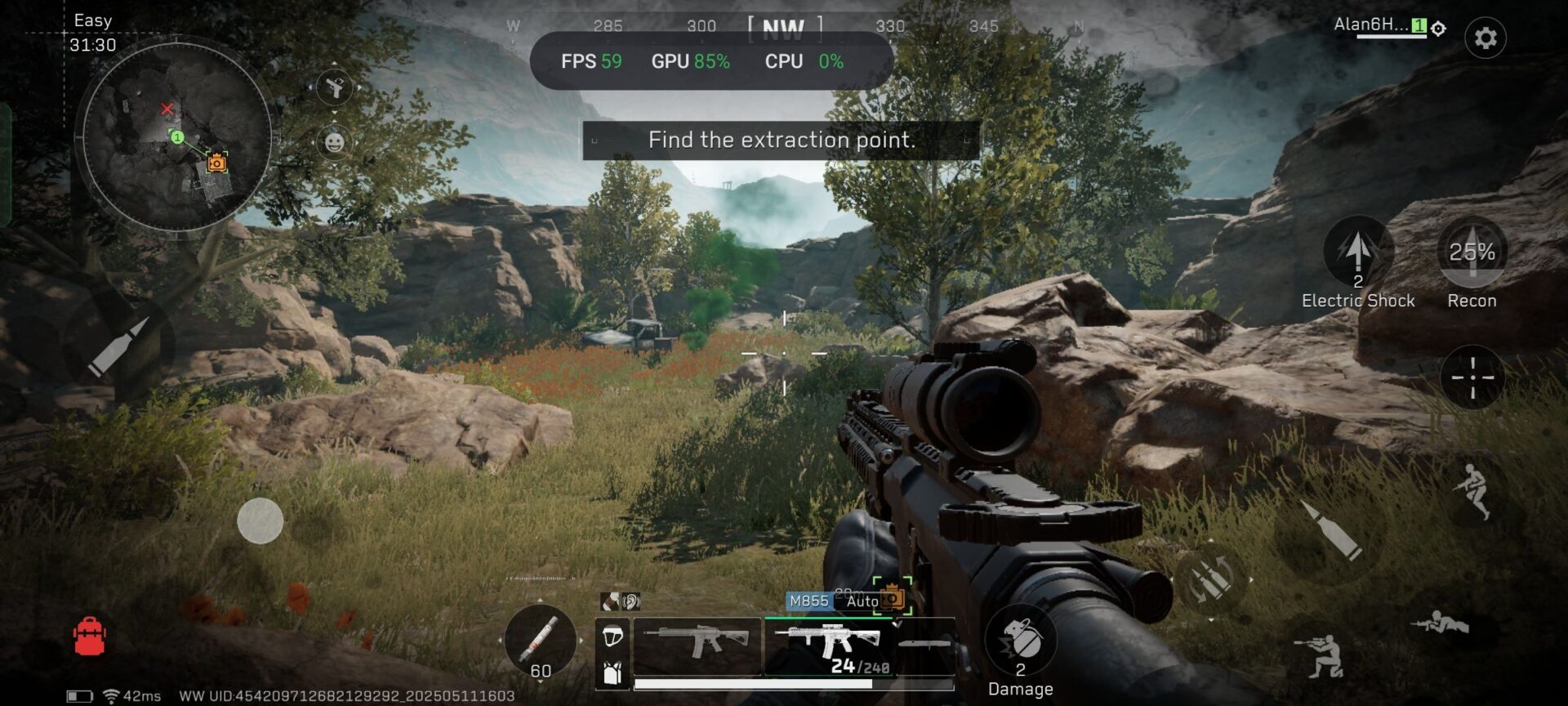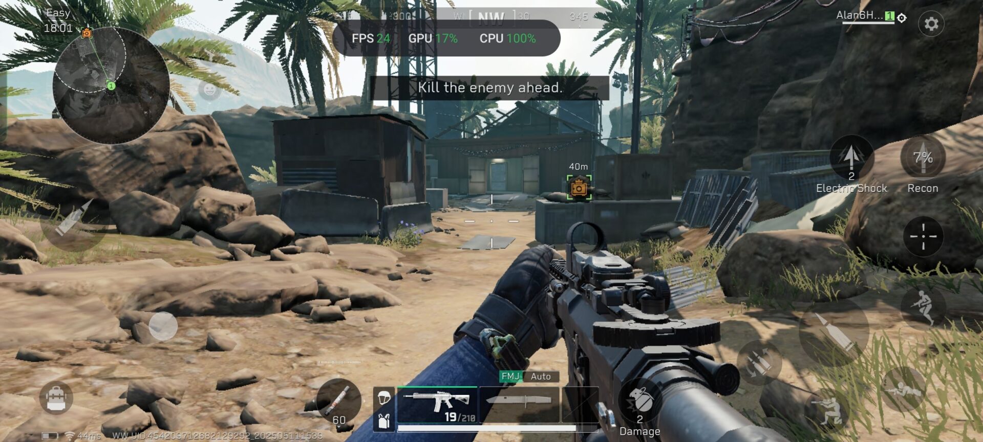 Fire Fire powinno na realme 14 śmigać w 120 klatkach na sekundę. Gołym okiem oczywiście nie jestem w stanie tego zmierzyć, ale nakładka gry pokazuje tylko +/- 90 FPS-ów. Oczywiście nie jest to mało, jak na smartfon i tak zapewnia superpłynną rozgrywkę. Natomiast Delta Force, czyli jedna z najnowszych gier FPS na smartfonach wydaje się zbyt wymagająca dla testowanego urządzenia. Tryby graficzne dla 90 i 120 klatek są zablokowane, możemy zagrać nawet na wysokich ustawieniach w 60 klatkach na sekundę. Trudno mi określić, czy to smartfon niedomaga do wyższych częstotliwości, czy raczej gra jest nie najlepiej zoptymalizowana. Z drugiej strony skoro Call of Duty działa w 90 klatkach, to chyba twórcy Delta Force mają co szlifować w porcie swoje strzelanki na smartfony.