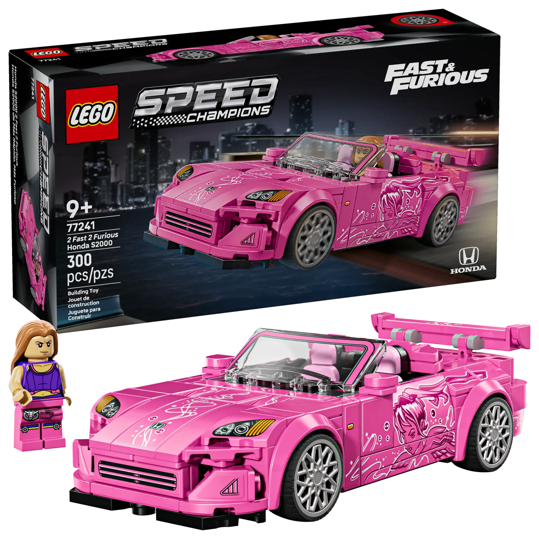 Dzięki zestawowi LEGO Speed Champions Honda S2000 z filmu „Za szybcy, za wściekli” (77241) fani filmów oraz chłopcy i dziewczynki w wieku od dziewięciu lat mogą odtworzyć sceny z kultowego filmu Za szybcy, za wściekli. Ta replika różowego kabrioletu ma realistyczne detale wzorowane na oryginalnym aucie, którym ścigała się Suki w słynnym filmie.