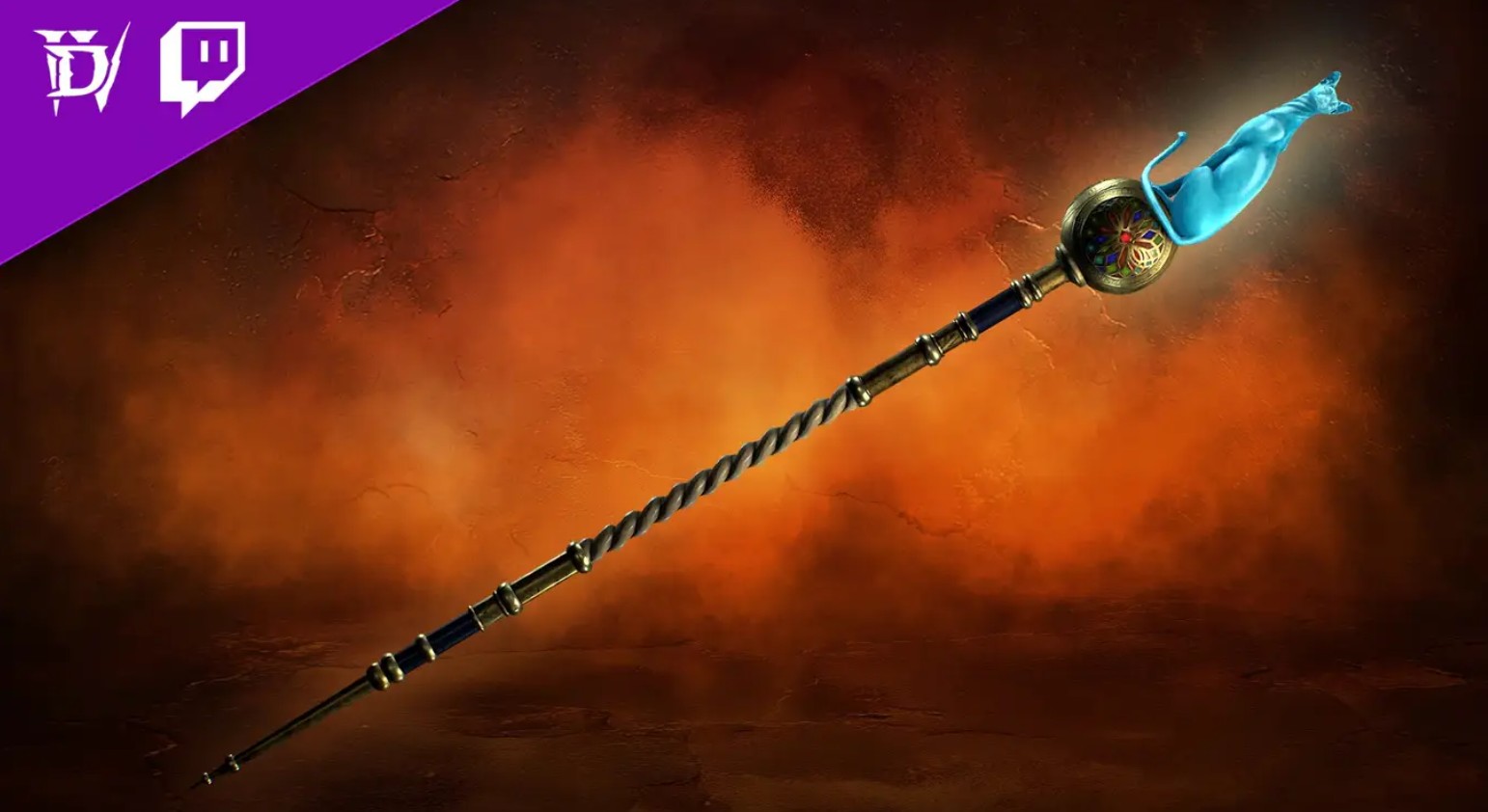 Co więcej, tym razem Blizzard przygotował dodatkową niespodziankę. Każdy, kto w trakcie trwania Developer Update będzie oglądał jakikolwiek stream z Diablo IV na Twitchu, otrzyma darmową skórkę. Nie trzeba śledzić głównego kanału. Wystarczy dowolna transmisja z kategorii Diablo IV. Po zaledwie 30 minutach oglądania gracz otrzyma dwuręczny kostur czarodzieja: Uczeń Lacuni (Lacuni’s Pupil).