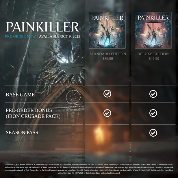 Painkiller, czyli odnowiony polski klasyczny FPS trafi na konsole PS5 i Xbox Series X|S w dniu 9 października. Właśnie ruszyły zamówienia przedpremierowe i wygląda na to, że cena jest bardzo zachęcająca. Standardowe wydanie na konsolach kosztuje 169 zł. Natomiast Deluxe Edition, która zawiera tylko przepustkę sezonową wyceniono na 219 zł.
