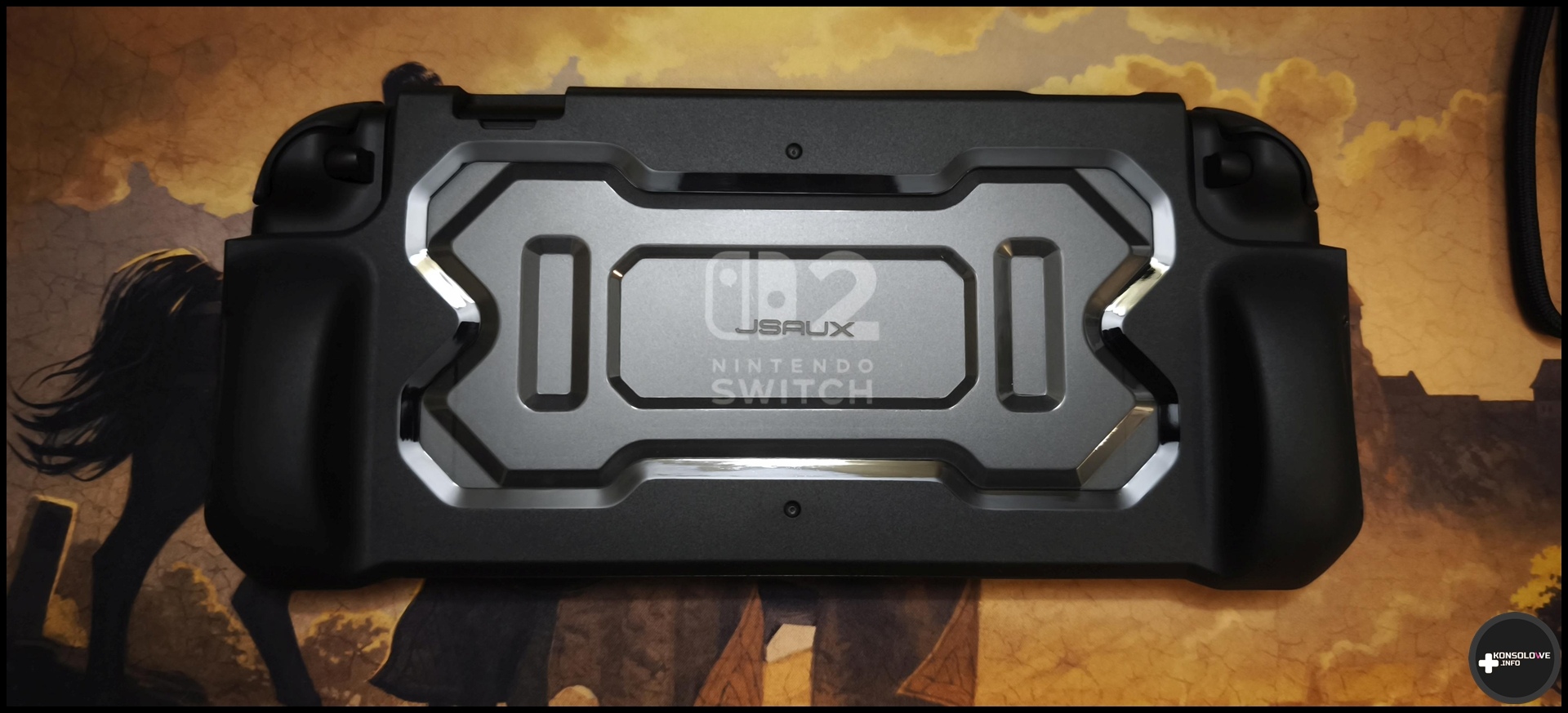 Pozostając jeszcze w kwestii wygody użytkowania konsoli, zdecydowanie warto zastanowić się nad zakupem specjalnego uchwytu (tzw. grip). Nie ma co owijać w bawełnę. Moim zdaniem pierwszy Switch nie był mistrzem wygody w trybie przenośnym i nie inaczej jest niestety z podstawowym wariantem Nintendo Switch 2. Jasne, większy ekran oraz większe kontrolery Joy-Con 2 są dużo lepsze niż w „jedynce”. Niemniej nadal nie jest to perfekcyjne rozwiązanie. Z odpowiedzią przychodzi na szczęście JSAUX, wprowadzając do swojej oferty uchwyt na tę konsolę. Montaż akcesorium jest banalnie łatwy. Odginamy po prostu boki gripa, po czym umieszczamy w nim Nintendo Switch 2 i dociskamy na krawędziach, by akcesorium i konsola się spasowały. To tyle – sami widzicie, że nie jest to żadna trudna sztuka.