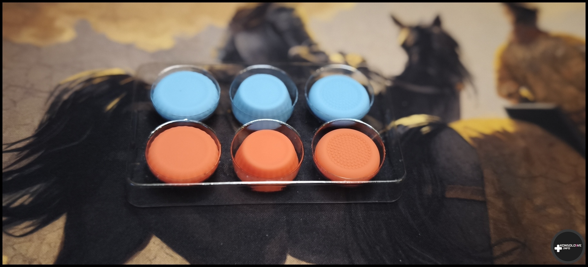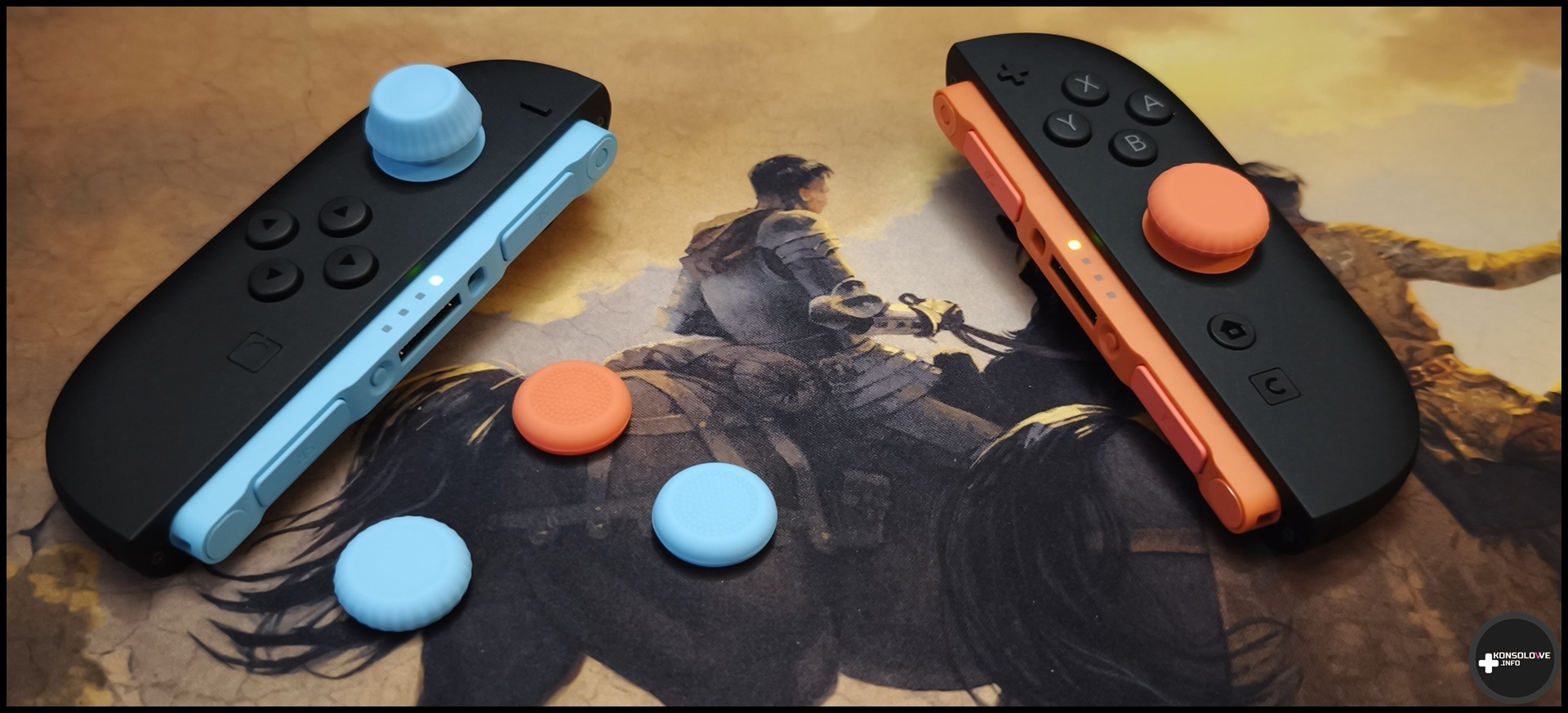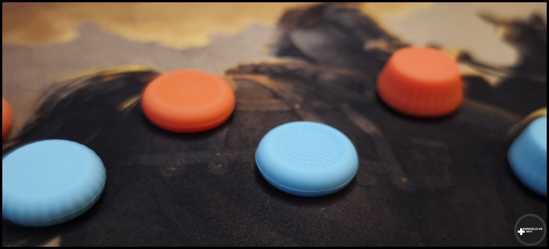 Jako że – tak, tak, wiem, to bardzo odkrywcze stwierdzenie 😉 – konsola służy głównie do grania, to niezwykle istotną jej częścią są gałki analogowe. Przyznaję, że na ogół nie jestem fanem podstawowych analogów montowanych w podstawowych kontrolerach. Co prawda wiele padów, które testowałem odznaczało się bardzo dobrej jakości analogami – jak choćby te w modelu od Aim Controllers, czy MANBA – aczkolwiek nie są to bynajmniej domyślne warianty sprzedawane w zestawach z konsolami. Z tego powodu bardzo często czułem silną potrzebę zainwestowania w nakładki na analogi (nadal korzystam z nich na jednym z moich kontrolerów DualSense). Bardzo chętnie skorzystałem więc z możliwości sprawdzenia nakładek dedykowanych Joy-Conom 2. Co od razu rzuca się w oczy, to ich kolory. Pasują one świetnie do pierścieni pod gałkami w konsoli Nintendo Switch 2.