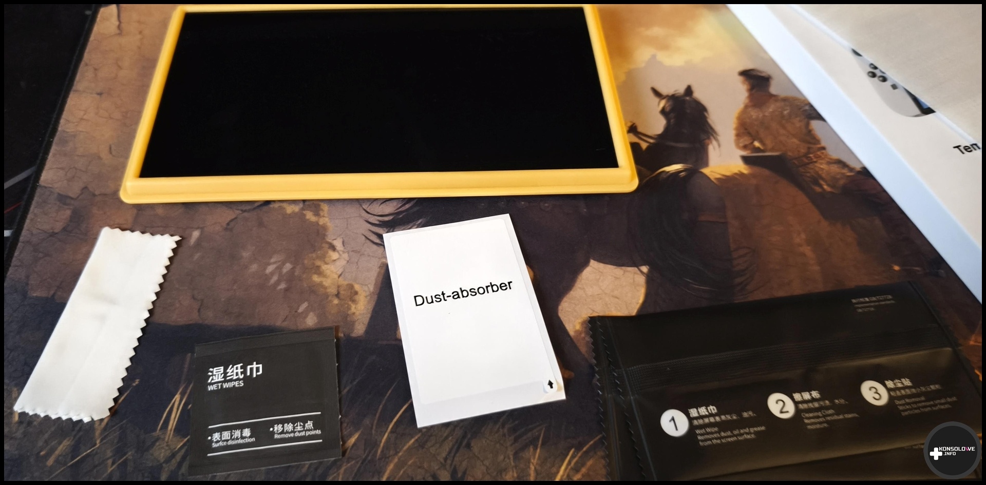 Kończąc pomału dzisiejszy artykuł, ale nadal pozostając przy zabezpieczeniu konsoli, nie mogę nie wyrazić swojej opinii na temat szkła hartowanego, które produkuje i sprzedaje bohater dzisiejszych testów – JSAUX. Ekran jest bez wątpienia największym i jednym z najważniejszych elementów Nintendo Switch 2. Co prawda posiada on fabrycznie naklejoną folię, aczkolwiek jej zadaniem jest po prostu chronienie przed wysypaniem się resztek szkła po ewentualnym rozbiciu ekranu. Warto byłoby więc bez dwóch zdań zainwestować w dodatkową ochronę wyświetlacza. Tu z odpowiedzią przychodzi szkło hartowane. Nie ukrywam, że zazwyczaj nie lubię montowania szkieł hartowanych na ekran. Na ogół mam problem z pozbywaniem się bąbli powietrza, wobec czego wolę chodzić do sprawdzonego serwisu, aby to on zamontował szkło. Na szczęście JSAUX zadbał o odpowiednie akcesoria i instrukcje, a więc przyczepienie szkła hartowanego do ekranu Switcha 2 nie stanowi żadnego problemu.