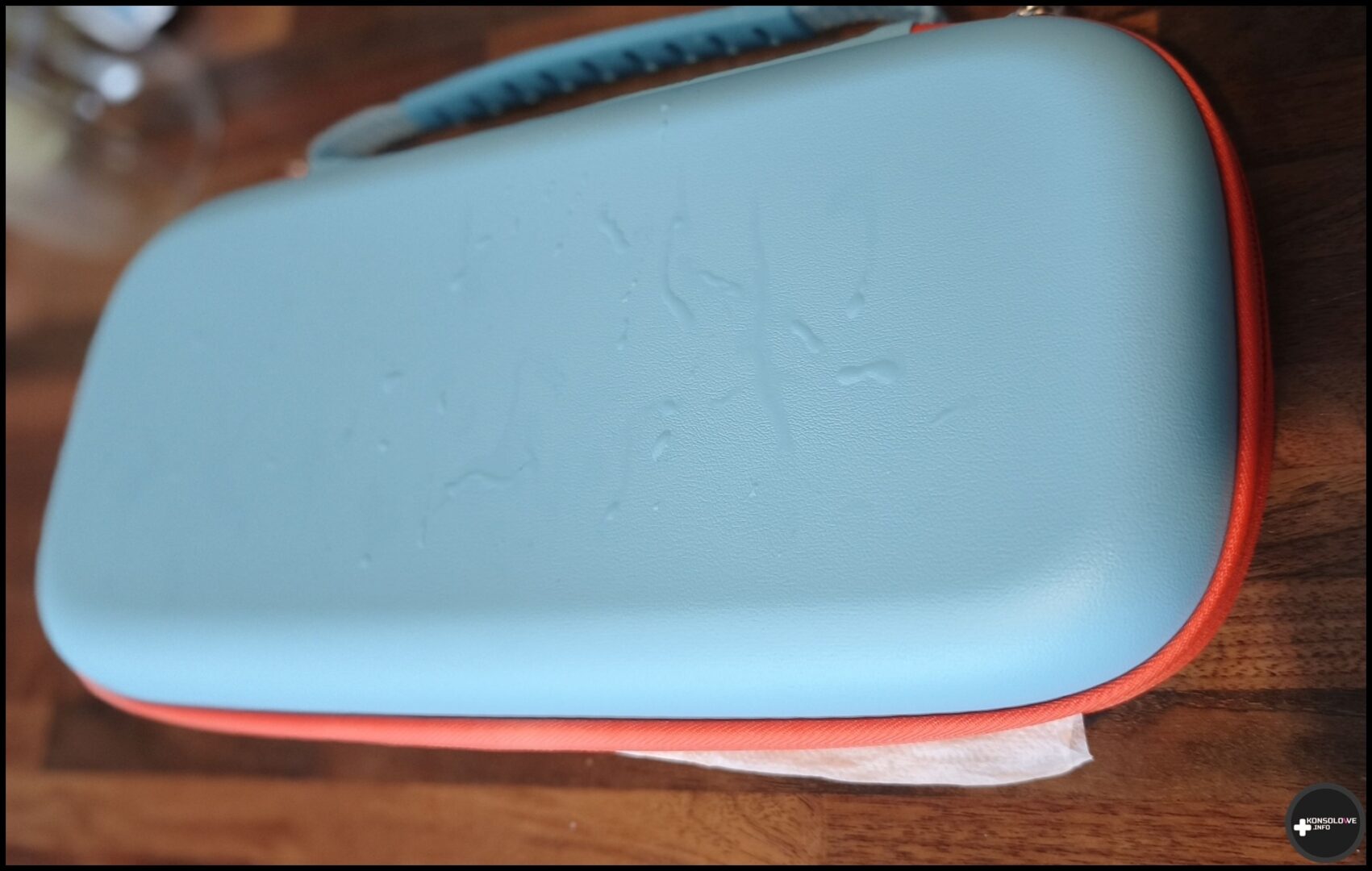 Nie powinno być problemu z chronieniem Nintendo Switch 2 przed deszczem. Opisywany pokrowiec faktycznie jest dość szczelny i jedyne ślady wody pojawiały się wewnątrz przy zamku. Jeśli więc nie zamierzacie pływać z konsolą, a chcecie mieć po prostu akcesorium, w którym możecie transportować swój sprzęt i ochronić go przed chwilowym, lekkim wpływem wody, to powinniście zainteresować się tym wariantem.