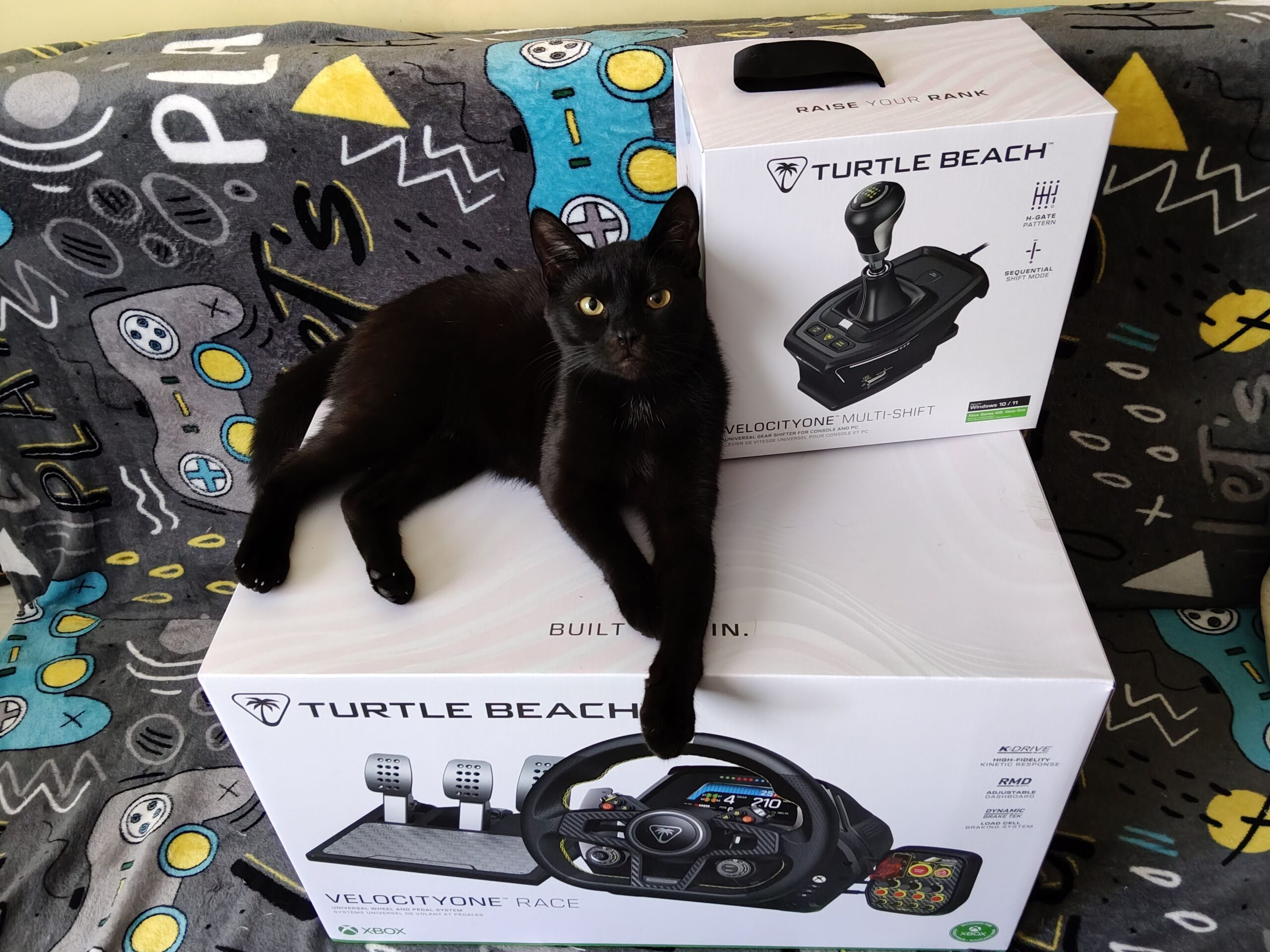 Wraz z kierownicą VelocityOne Race otrzymałem od firmy Turtle Beach Multi-shift. Są to trzy urządzenia w jednym: skrzynia biegów w układzie H, skrzynia sekwencyjna oraz hamulec ręczny. Urządzenie wyceniono na 599 zł (Na Amazonie 559 zł) i patrząc na to, że zawiera w sobie aż trzy opcje, to uważam tę cena za dosyć atrakcyjną. Tym bardziej że zawartość pudełka jest dosyć imponująca. W zestawie znajdziemy: