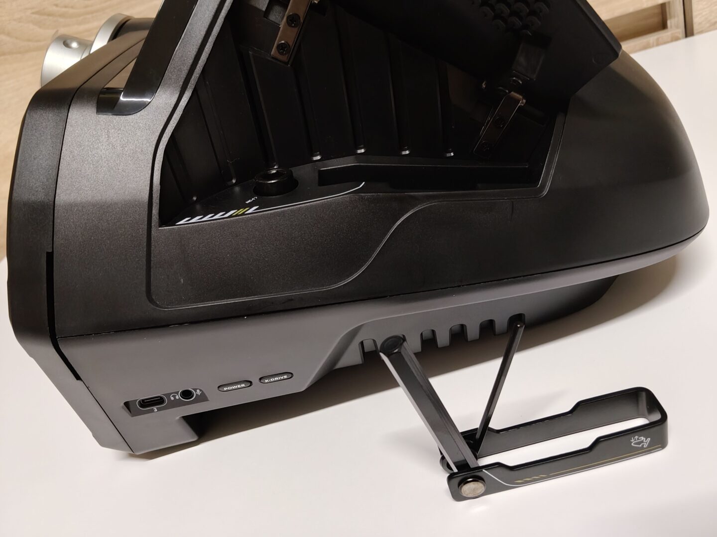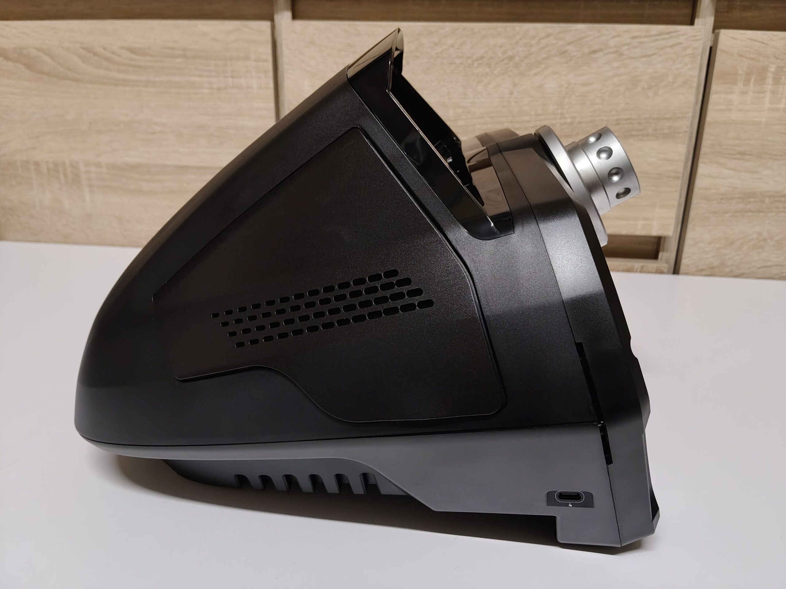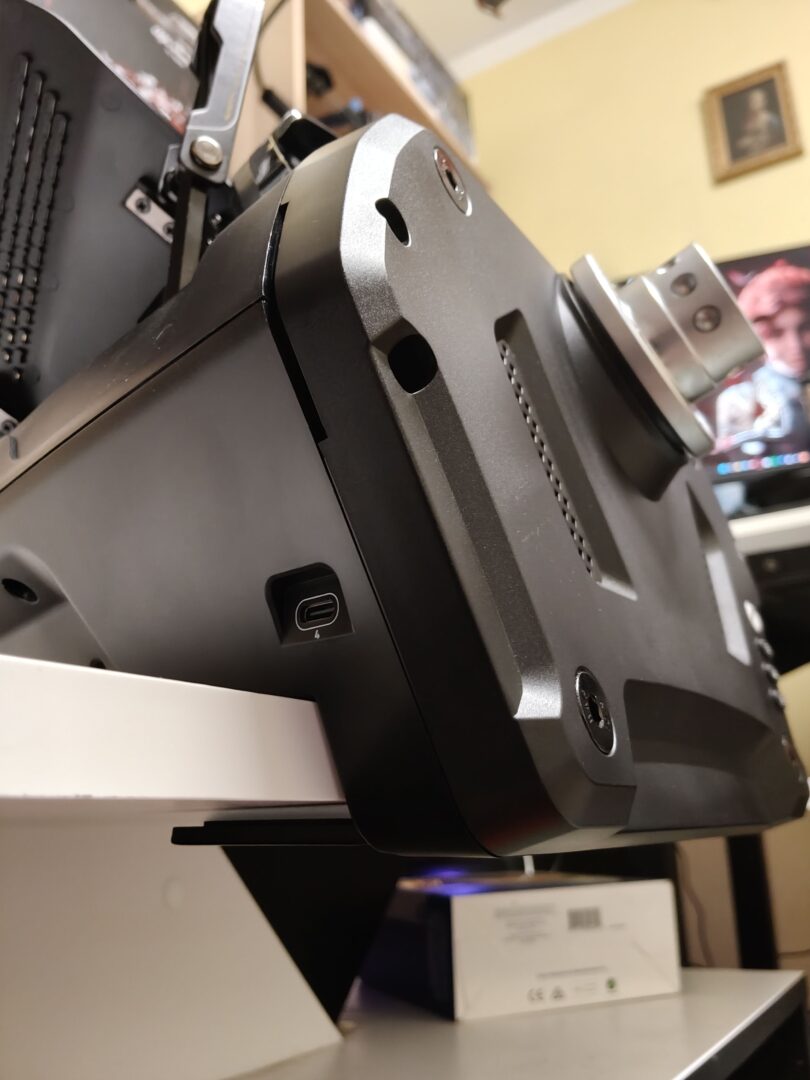 Sercem bazy VelocityOne Race jest silnik Direct Drive o szczytowej mocy 7.2 Nm. Dzięki funkcji Kinetic Drive siłowe sprzężenie zwrotne możemy regulować w locie przy pomocy małego buttonbox-a lub bezpośrednie w ustawieniach kierownicy na ekranie LCD. Do wyboru mamy 25, 50, 75 i 100%. Mnie najlepiej się grało na 75%, co odpowiadało 5 Nm. Ogromnym zaskoczeniem był dla mnie montaż bazy do blatu. W tym celu musimy unieść dwie boczne plastikowe pokrywy do góry – baza przypomina wtedy wysuniętą osłonę silnika Lamborghini Murcielago z 2005, który się przegrzewał. W prawej kieszeni ukryto klucz imbusowy. Pod tymi skrzydełkami mamy również ukryte dwie śruby, które wysuwają nam metalowe mocowania w kształcie liter L. To bardzo fajne rozwiązanie, które nie psuje nam ogólnego wyglądu bazy, niesamowicie mnie się to spodobało. Oczywiście baza ma też kilka otworów montażowych, więc bez większych problemów przykręciłem ją do swoje stojaka Huzaro Speed 3.