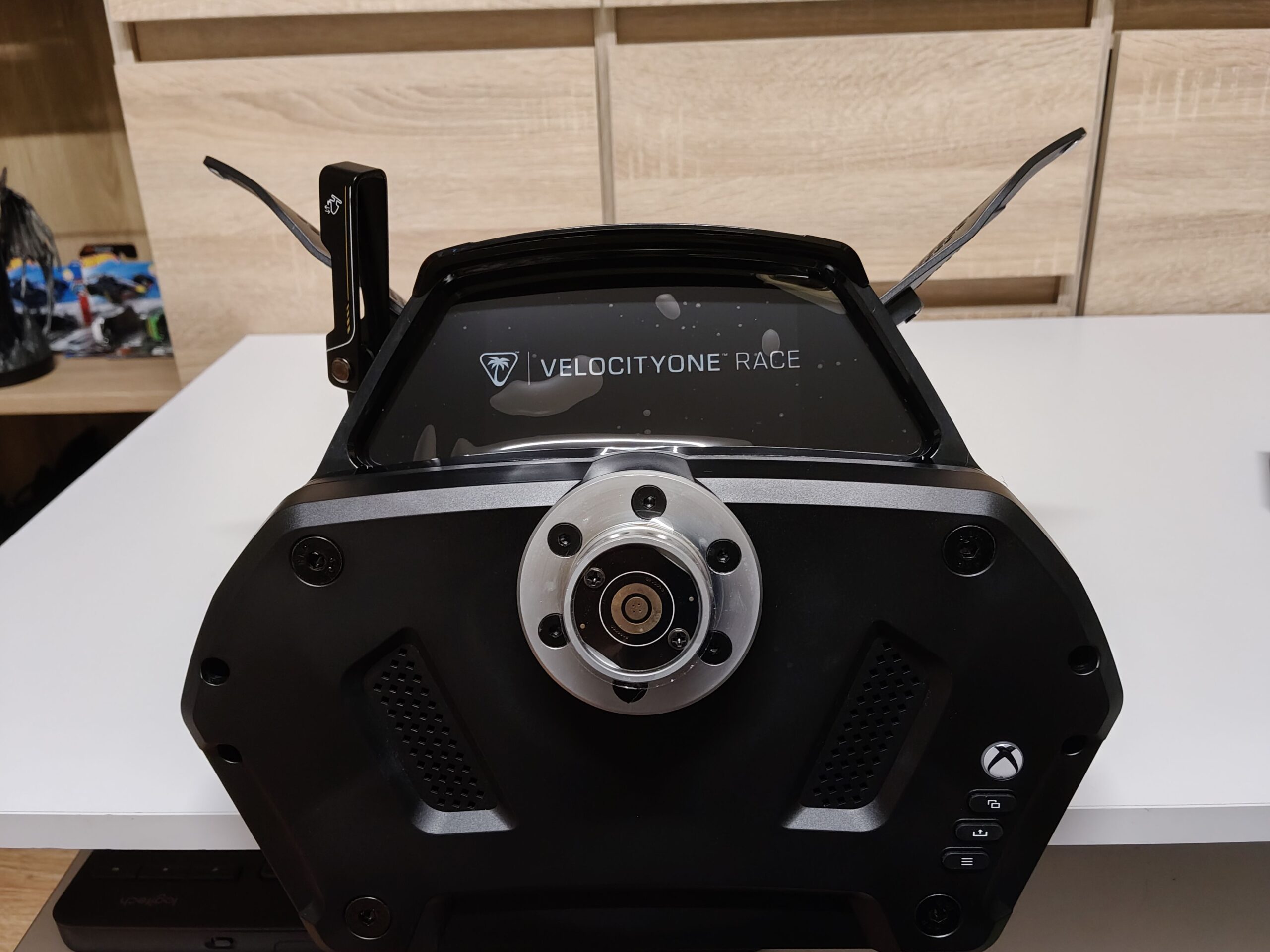 Nie ulega wątpliwości, że Turtle Beach VelocityOne Race robi niesamowite pierwsze wrażenie. W oczy od razu rzuca się sportowa obręcz kierownicy w kształcie litery D, deska rozdzielcza z dużym ekranem LCD oraz dodatkowy boczny panel z przełącznikami i pokrętłami. Nie rozumiem, dlaczego producent wyraźnie nie informuje, że jest to kierownica z systemem Direct Drive o mocy 7 Nm. Po samym wyglądzie, wielu ludzi może ocenić, że jest to kiepski napęd pasków klinowych lub co gorsze oparty na zębatkach.