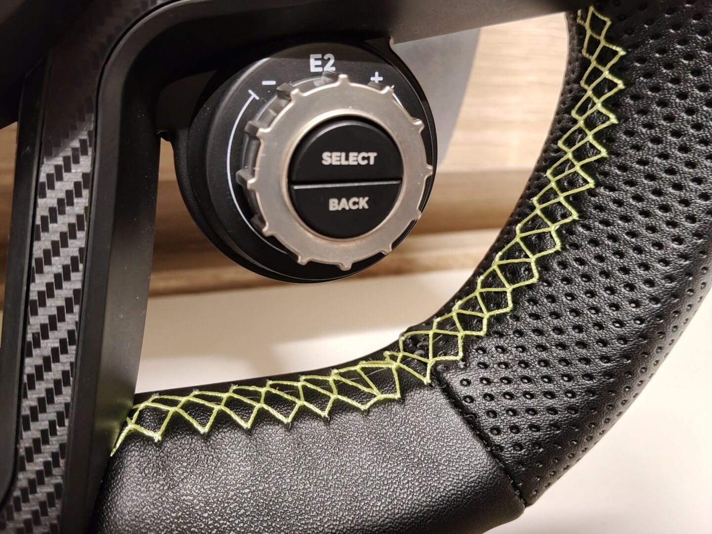 Kierownice do bazy VelocityOne Race montujemy za pomocą system Quick Realse. Ma on bardzo podobne działanie do tego, co znajdziemy w produktach firmy MOZA. Niestety obręcze innych firm nie są kompatybilne z tym systemem. Rozmiar gwinta się zgadza, ale nie pasuje liczba kuleczek od łożyska. Na kierownicy umieszczono 6 przycisków (XYAB, LT i RT), 5 zatrzaskowych przełączników i 3 pokrętła do regulacji kontroli trakcji, ABS-u, balansu hamulców, czy wzbogacenia mieszanki paliwowej. Natomiast w dolnej prawej części kierownicy umieszczony pokrętło i dwa przyciski do obsługi wyświetlacza LCD.