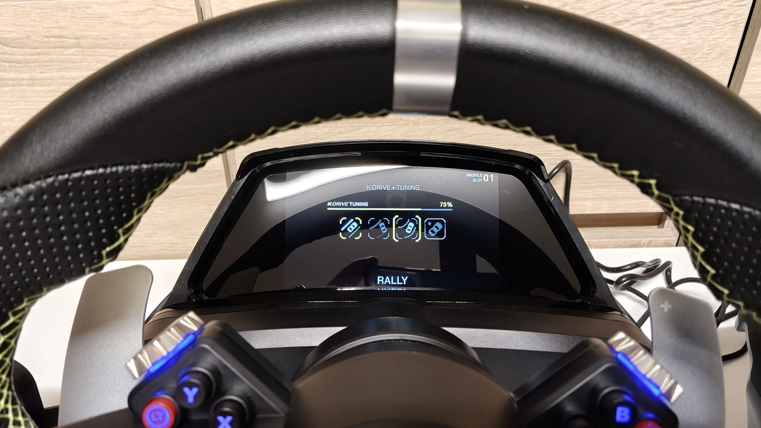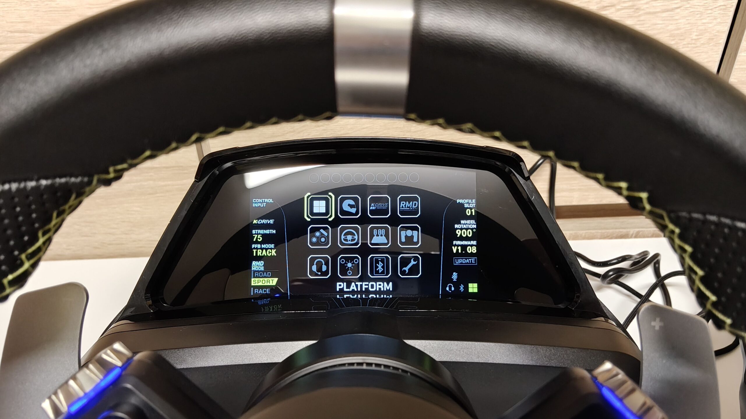 Mnie niestety duże problemy spotkały przy aktualizacji softu kierownicy. Powinna ona trwać 20 minut, u mnie skończyła się po pięciu minutach. Coś poszło nie tak i ekran LCD odmówił posłuszeństwa, nie uruchamiał się razem z kierownicą. Kolejne aktualizacje już 20-minutowe nie sprawiły, że ekran zaczął działać. Rozwiązaniem okazał się twardy reset kierownicy, do którego kombinacje znalazłem gdzieś na Reddit. Kierownica cały czas migała na czerwono, ale się aktualizowała. Po ponownym podłączeniu do PC wszystko zaczęło działać. Stres niesamowity.