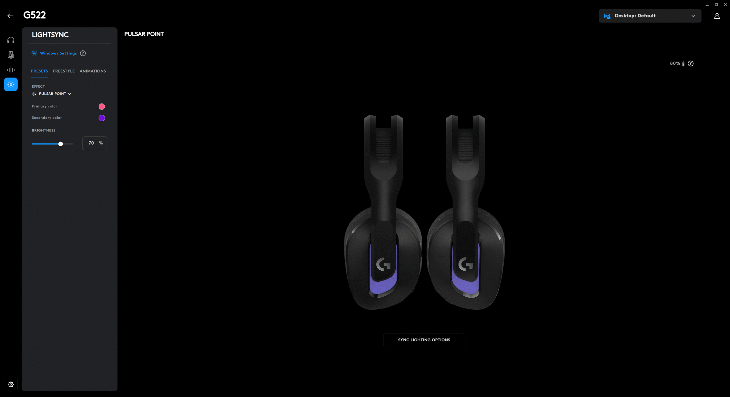 Ciekawostka: w ustawieniach możemy włączyć tryb długowieczności baterii, który ograniczy nam maksymalne naładowanie jej do 80%, wydłużając tym sposobem jej żywotność. Przy bardzo komfortowym domyślnym czasie na jednym ładowaniu, jest to świetna opcja dla tych, którzy nie zmieniają słuchawek za często i chętnie zostaną z tym modelem na dużo lat. (Realnie, headset G733 służył mi wiernie przez ponad 5 lat i bateria nadal nie sprawiała mi żadnych problemów.)
