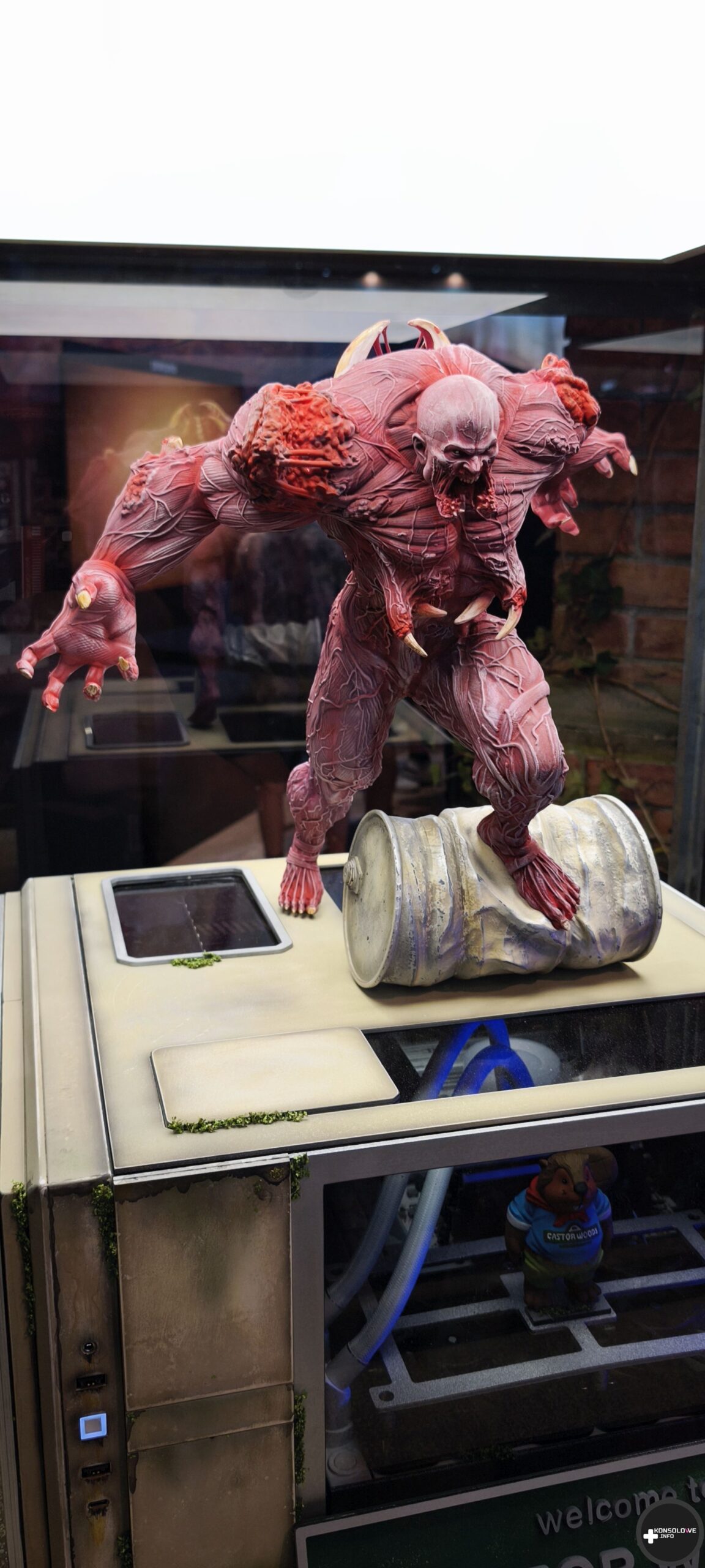 Zauważyłem także, że gra działa naprawdę świetnie, a sterowanie jest niezwykle responsywne. Jeżeli wrażenie to utrzyma się również w pełnej wersji gry, to możemy mieć do czynienia z najbardziej płynną i przyjemną odsłoną serii. Postaram się jeszcze napisać w tym tygodniu więcej o samej grze, więc teraz przejdę do opisania budki. Umiejscowiono w nim również fotobudkę, którą absolutnie polecam odwiedzić każdemu. Zakładając, że nie jesteście słabego zdrowia… Techland stworzył z niej prawdziwą perełkę targów i absolutnie trzeba się do niej wybrać. Będąc jeszcze w strefie Dying Light, nie zawahajcie się spróbować swojego szczęścia. Odpowiednio silnie uderzając młotem, możecie wygrać przypinkę, burgera, czy chociażby naklejki. Nie ukrywam, że stanowisko Dying Light: The Beast zachwyciło mnie. Jeśli cała gra będzie tak udana, jak ta strefa, to czeka nas prawdziwy hit.