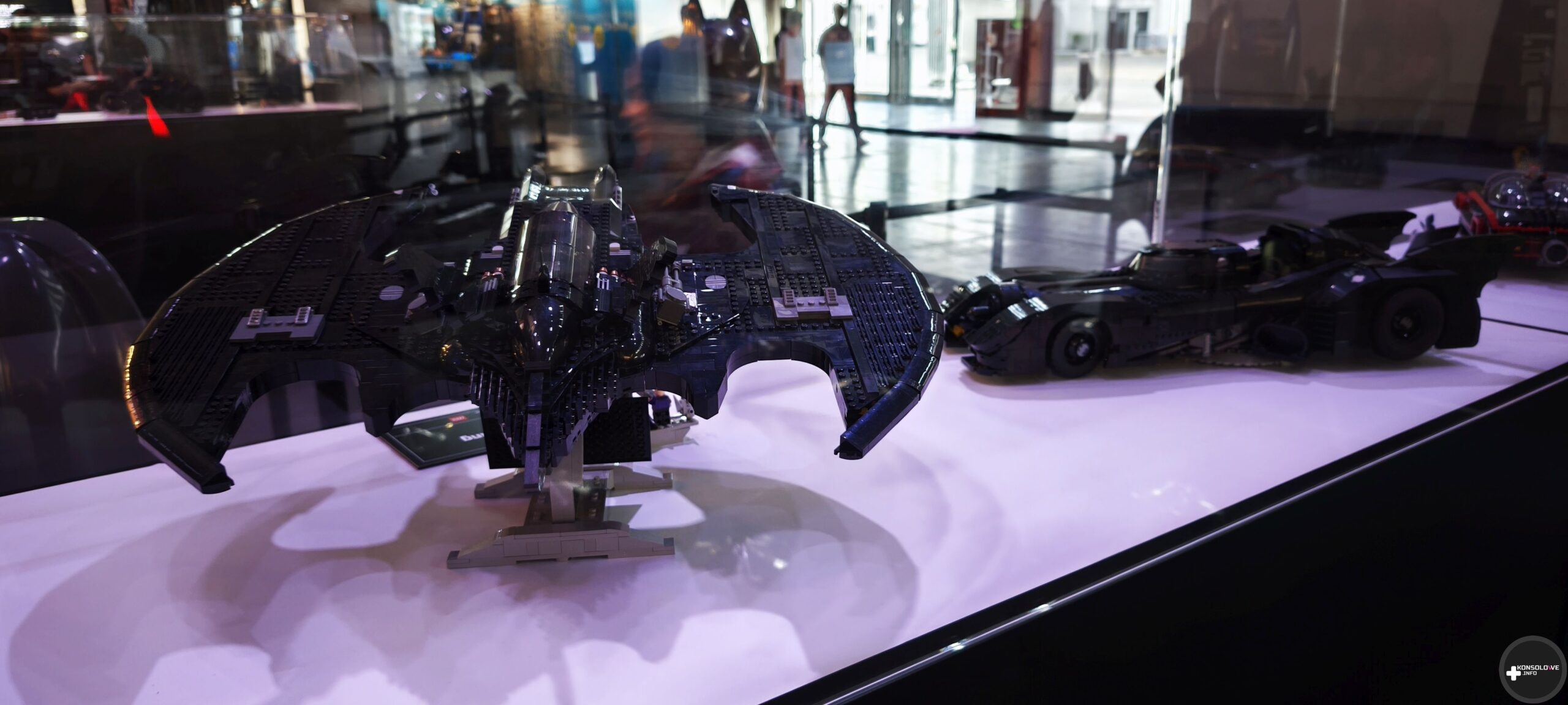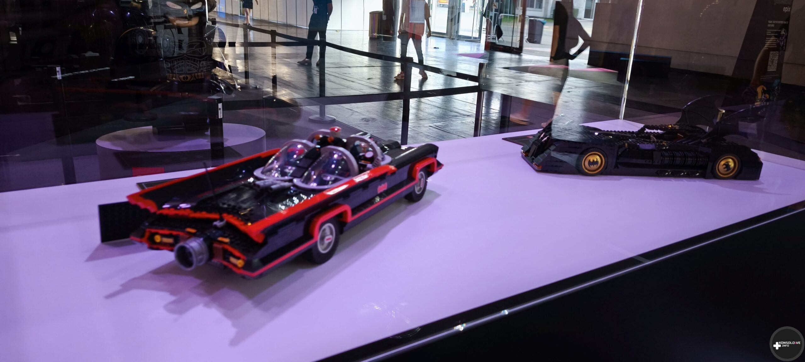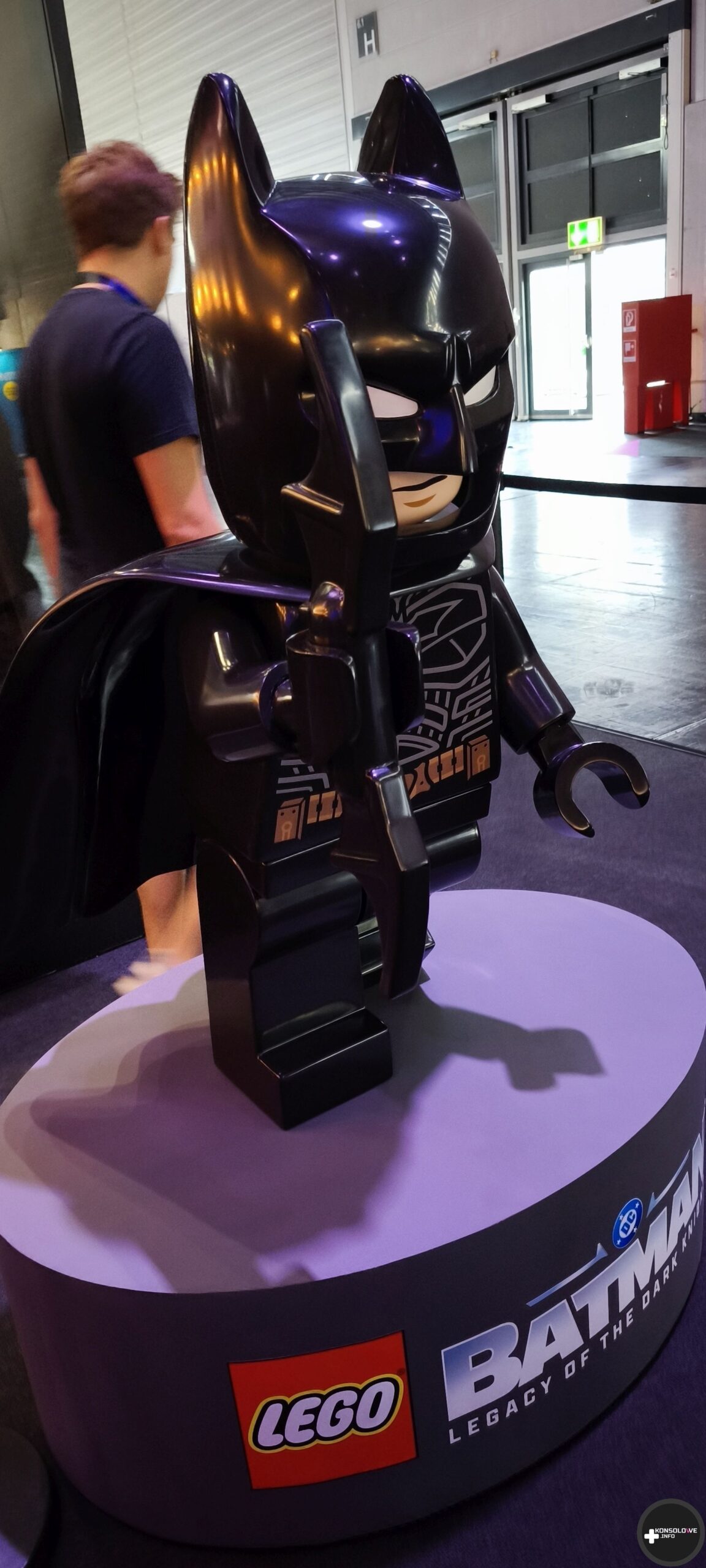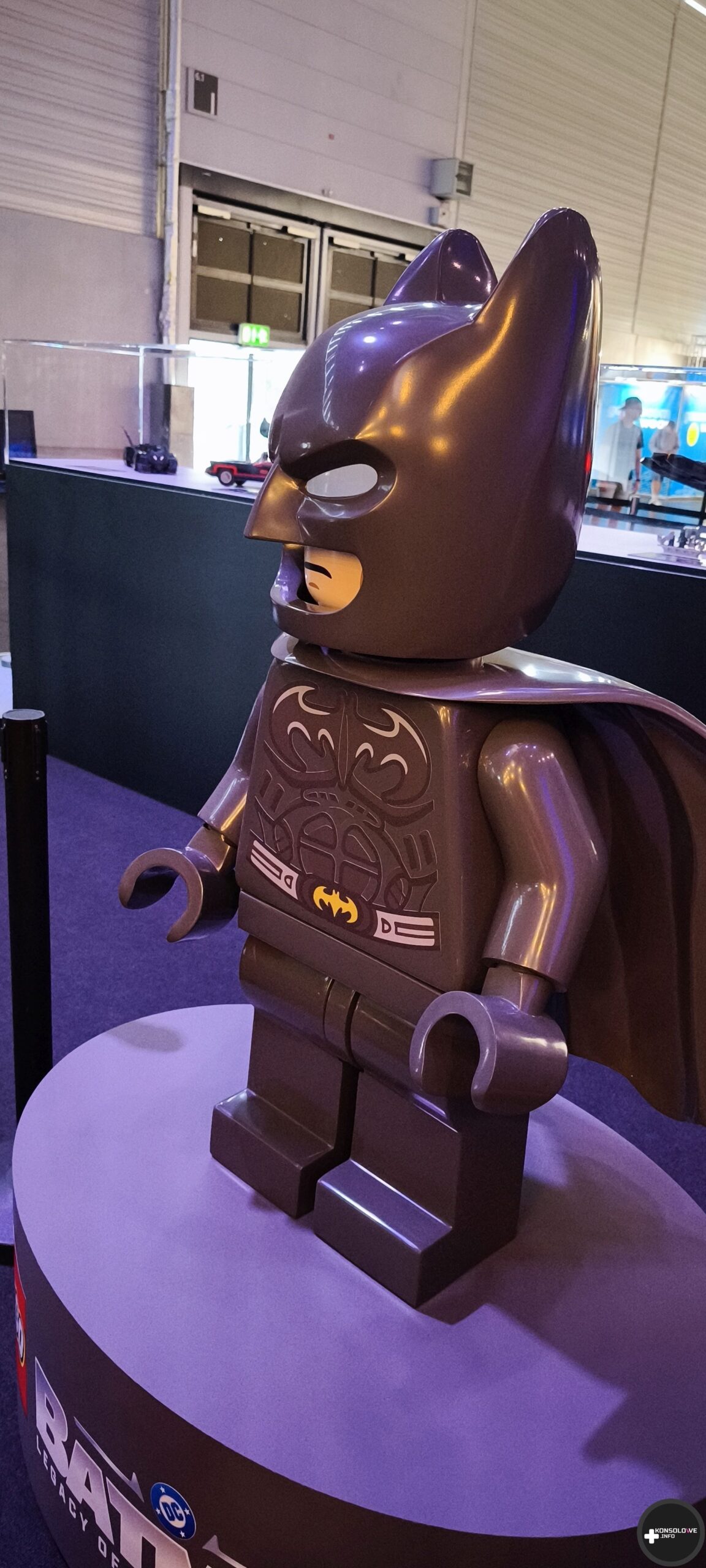 Natkniemy się też na wyeksponowane batarangi i bat-pazur. Nie sposób również nie docenić wystawionych strojów z filmów – coś dla siebie znajdą zarówno fani wersji Nolana, jak i Nietoperza w wykonaniu Pattinsona. Natomiast ściany przedstawiają uliczki Gotham, gdzie możemy natknąć się na plakaty Cobblepota, Denta czy nagłówki gazet dyskutujące na temat Batmana. Przed zagraniem w demo TT Games wprowadza wszystkich chętnych do sali gdzie na wielkim ekranie kinowym przedstawia zasady rozgrywki i sterowania. Pięknym, wzruszającym wręcz, smaczkiem jest fakt, iż projekcja odbywa się w Monarch Theatre. Nad jego drzwiami widać informację o najnowszej premierze – LEGO Batman: Legacy of The Dark Knight. Łezka może się w oku zakręcić. Niżej możecie zobaczyć małą galerię zdjęć, jakie uchwyciłem w tej strefie.