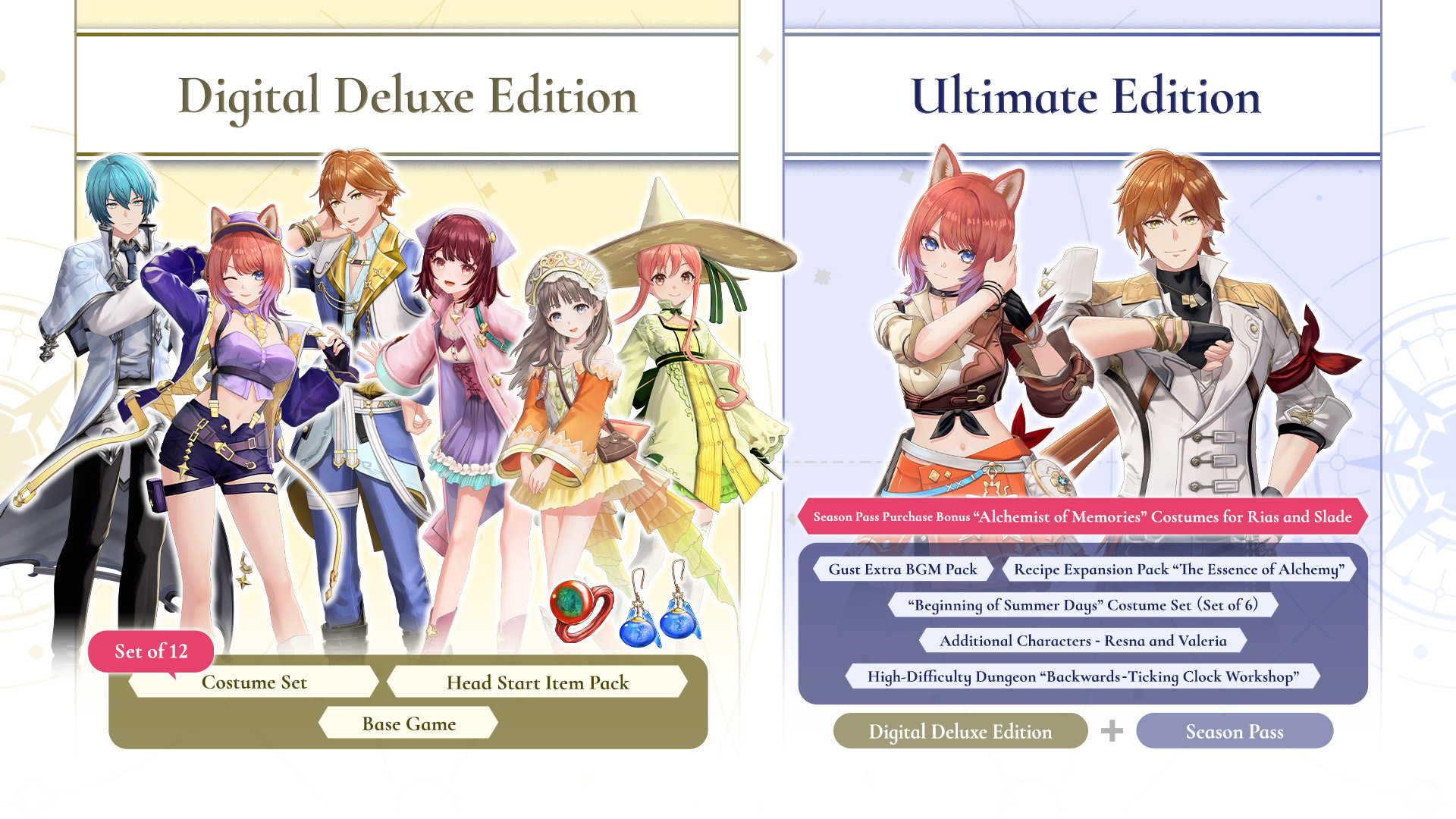- Postać Resny i Valerii z Atelier Resleriana (kolejnej gry z serii Atelier), które zostaną dodane jako członkinie drużyny po przejściu odpowiedniego etapu historii. Ponadto do zwartości gry zostaną dodane ich dodatkowe historie, które gracz będzie mógł rozegrać.