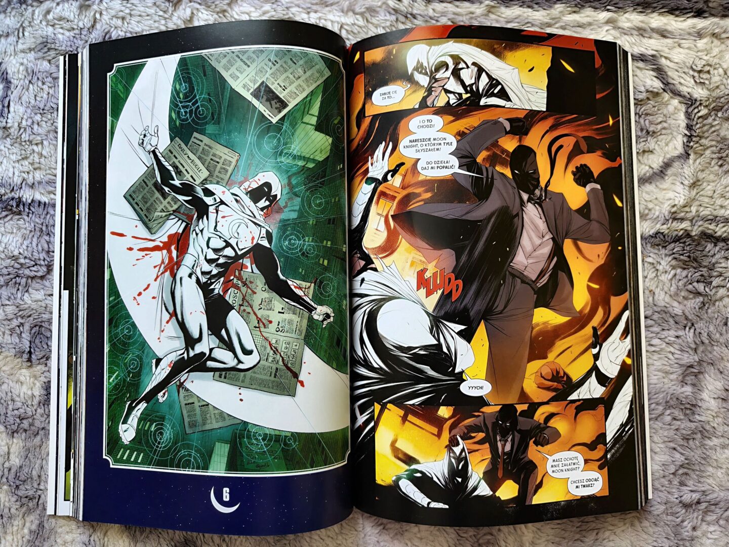 Z kolei „Devil’s Reign: Moon Knight” #1 to one-shot osadzony w ramach większego eventu Marvela. Główne skrzypce gra tu dobrze znany Wilson Fisk (Kingpin). Który próbuje zdławić superbohaterów w Nowym Jorku. Wydanie to skupia się na konsekwencjach aresztowania Moon Knighta i jego pobycie w więzieniu. Choć to tylko krótka odsłona, dobrze uzupełnia główną serię. Czytelnik zobaczy, że Mark, pozbawiony swoich rytuałów i przestrzeni do działania, nadal jest nieprzewidywalny i niebezpieczny. Nawet w tak kontrolowanym środowisku, jak zakład karny. To historia, która wzmacnia obraz bohatera jako osoby nieustannie balansującej na granicy prawa, moralności i własnych demonów.