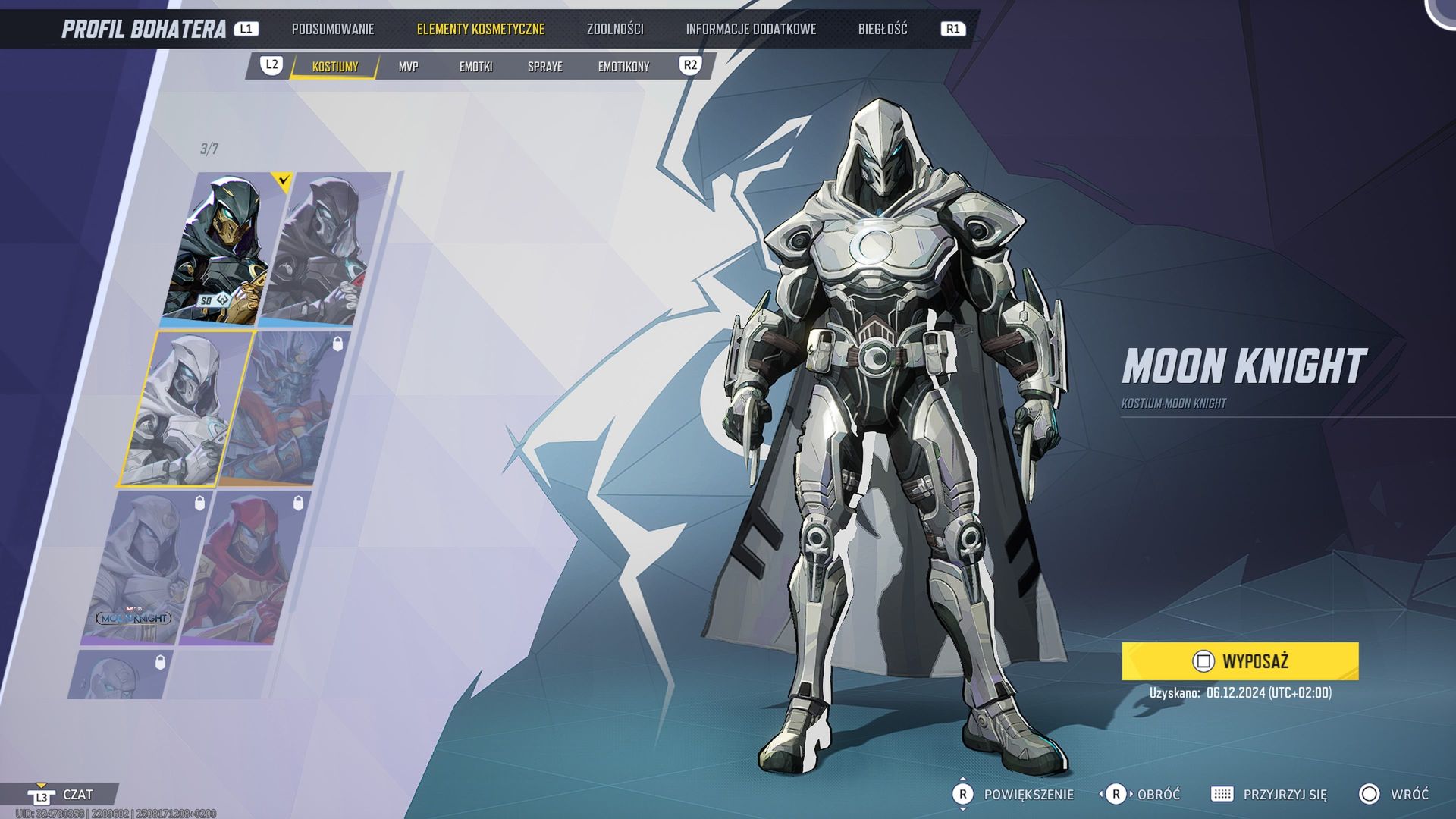 Firma Marvel od grudnia 2024 roku ma kapitalną strzelankę sieciową z super bohaterami. Od samej premiery Moon Knight jest jedną z popularniejszych postaci atakujących. Jego główną zdolnością jest rzucanie przed siebie półksiężycami. Jednak bez wątpienia jego najczęściej używaną umiejętnością jest „starożytny anch”, od którego odbijają się półksiężyce raniące przeciwników. Superzdolnością jest „ręka chaosu” – na przeciwników przez portal spada wiele szponów Khonshu. Jeżeli chodzi o stroje, to znajdziemy tu m.in. oficjalny kostium z sześcioodcinkowego serialu Moon Knight z 2022 roku od Marvel Studios na Disney+. Innym popularnym strojem jest Mister Knight, który pierwszy raz pojawił się w komiksie Secret Avengers (2010 rok).