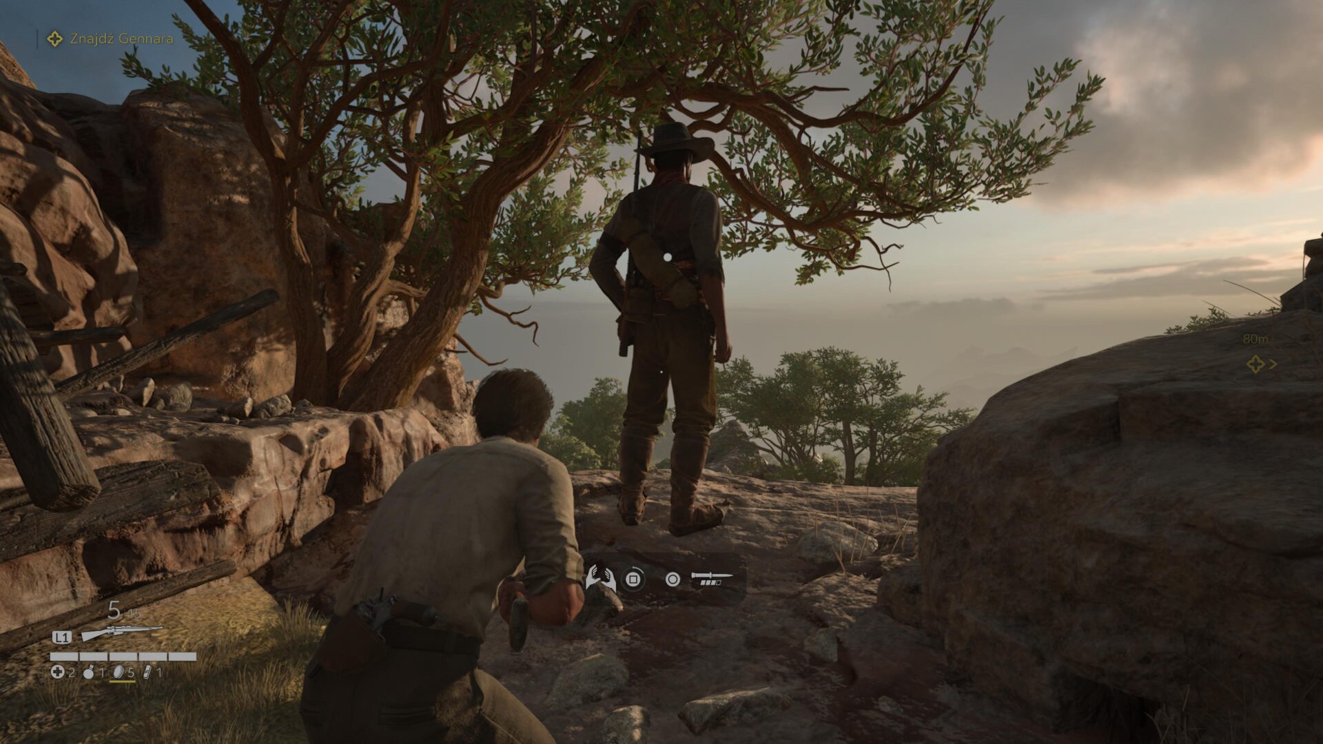Raczej nie skłamię, gdy napisze, że w trakcie 10-godzinnej rozgrywki nie było wolnej godziny od walki na noże. Walczyłem w naprawdę w dziwnych miejscach, a to roznosząc zamówione wino, dyskutując ze zbuntowanymi pracownikami, po strzelaninie w kanionie, czy goniąc kogoś przez pół mapy. Taka walka jeden na jednego trochę przypomina pojedynek z bossem z gry soulslikowej. Mamy szybki cios lub mocny zamach, możemy zrobić unik lub odbić uderzenie przeciwnika. Każda walka jest niestety taka sama, gdy przeciwnik wykonuje szybki cios, to korzystasz z odbicia i go kontrujesz. Gdy wykonuje mocny zamach, to jedynym ratunkiem jest unik. Co gorsze w połowie walki odpala się scenka QTE, w której musimy szybko naciskać wymagany przycisk, aby powalić przeciwnika. Następnie powtarzamy całą monotonną walkę od nowa.