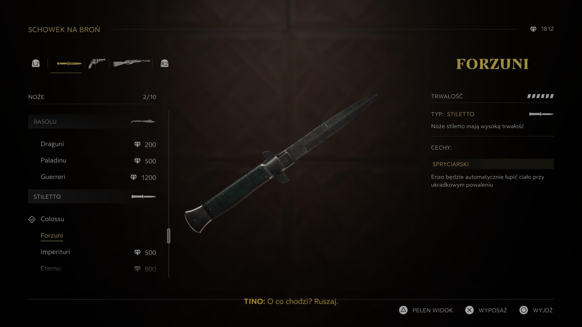 W grze możemy zdobyć lub kupić kilka unikalnych noży. Jednak tak naprawdę żaden z nich nie ma dużego wpływu na walkę. Stąd też postawiłem na taki, który ma największą wytrzymałość, gdyż noży używamy także do otwierania skrytek ze skarbami. Nóż traci swoją wytrzymałość po każdym użyciu, jednak za pomocą osełki możemy przywrócić mu dawny blask. To mechanika dobrze znana choćby z gry The Last of Us. Z dzieła Naughty Dog pożyczono także sejfy wraz z ukrytymi notatkami, które zawierają kod.