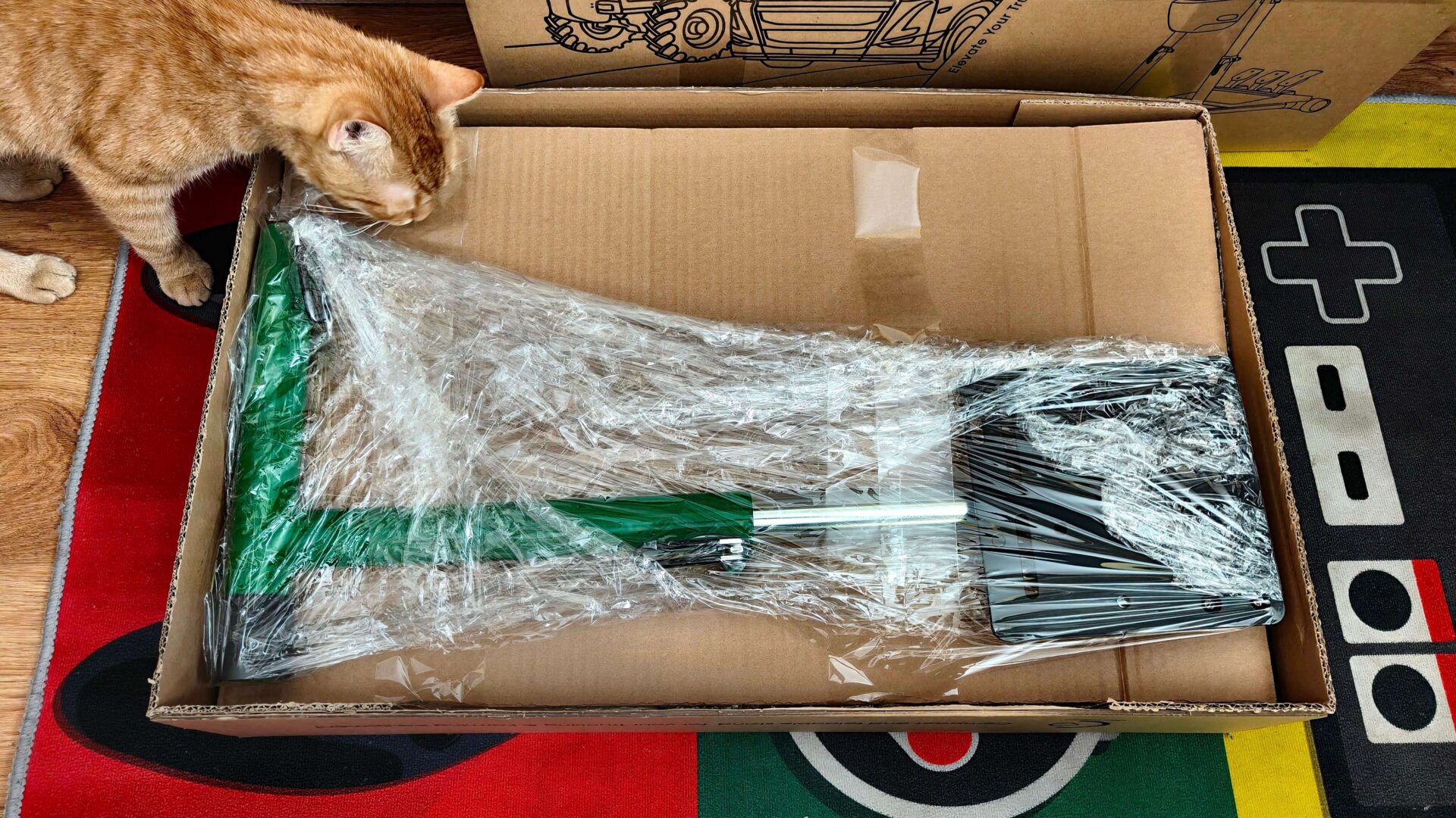 Wheel Stand Pro Farm Truck przychodzi w dużym, płaskim kartonowym pudełku. Sam karton mogę uznać za ekologiczny, gdyż użyto tylko czarnej farby do zaprezentowania stojaka po złożeniu na froncie opakowania. Natomiast z tyłu znajdziemy możliwości konfiguracji wraz z listą kompatybilnych kierownic oraz kolorem. Do wyboru są trzy kolory: zielony, żółty oraz czerwony. Mimo braku użycia styropianu wszystko dobrze jest zabezpieczone za pomocą wkładek z kartonu. Zestaw składa się z kolumny centralnej, to do niej montujemy bazę z kierownicą oraz manipulatory nożne. Dodatkowym modułem w WSP Farm Truck, jest kolumna boczna, do której montujemy skrzynie biegów oraz klawiaturę. W zestawie znajduje się jeszcze moduł balansujący, który zapewnia lepszą stabilność stojaka. Oczywiście nie zapomniano o różnych dodatkach i akcesoriach, jak śrubki, klucze, a nawet trytytki.