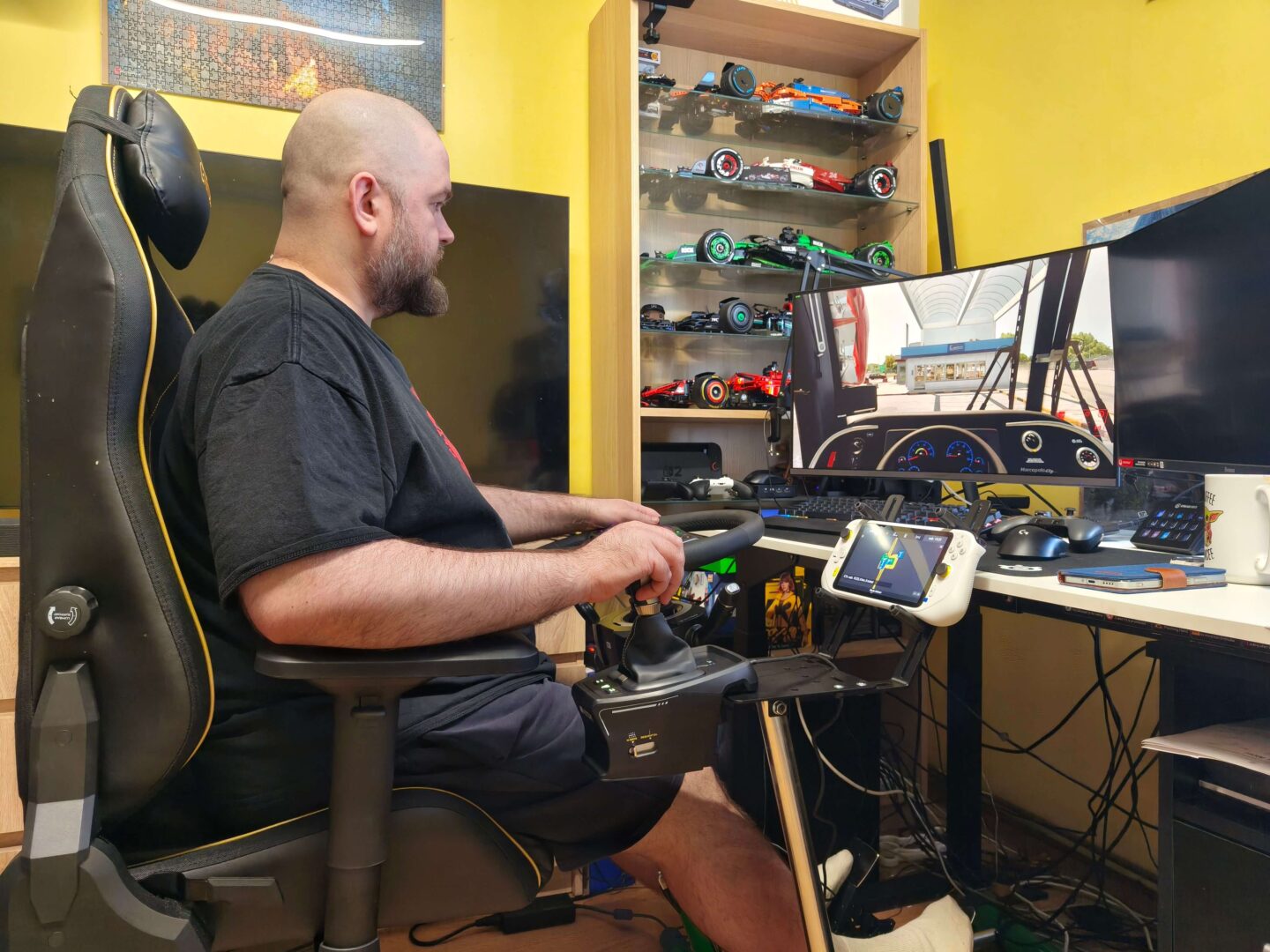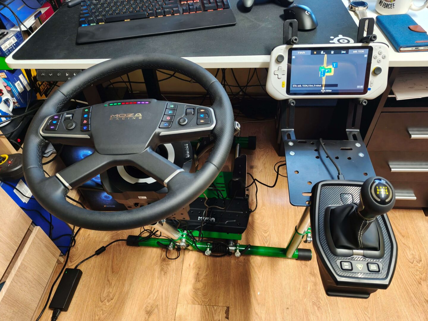 Stojak polskiego producenta przetestowałem oczywiście z najlepszym i najdroższym zestaw dostępny do symulatorów ciężarówek, czyli MOZA TSW Truck na bazie R5. Oczywiście nasz stand jest kompatybilny także z tańszymi zestawami: Thrustmaster T128 SimTask, Hori Force Feedback Truck Control System, czy Aerosoft Truck & Bus Wheel System. Co ciekawe kolumna centralna jest także kompatybilna z wieloma zestawami wyścigowymi takich uznanych producentów, jak Fanatec (GT DD PRO), Logitech (G29/G920/G923), Thrustmaster (T598/T300RS, czy MOZA (R3 do R9). Szczegóły znajdziesz na oficjalnej stronie produktu.