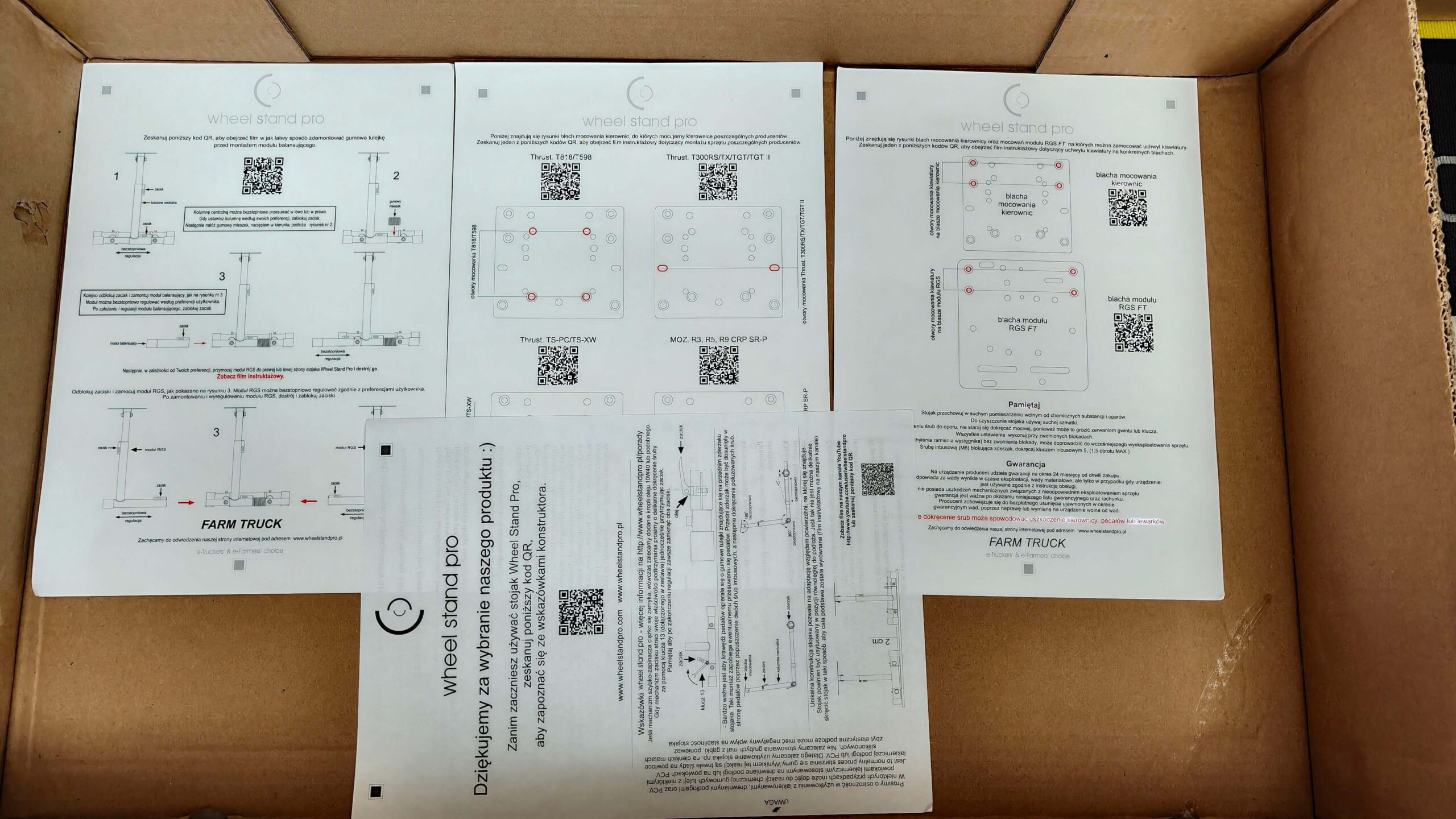 Montaż WSP Farm Truck zaczynamy nietypowo od demontażu dwóch gum z przedniej części centralnej. Musimy to zrobić, gdyż z lewej strony doczepimy moduł balansujący. Natomiast z prawej kolumnę boczną na nasze farmerskie lub truckerskie akcesoria. Demontaż gum warto wykonać w rękawiczkach, gdyż świeże ogumienie może zostawić ślady na waszych palcach. Co ciekawe centralna kolumna teleskopowa ma dodatkową regulację. Mianowicie możemy przesuwać ją w lewo lub prawo w zakresie 7 cm. Na samym końcu zostaje zamontować już tylko blachę do mocowania pedałów oraz uchwyt do klawiatury. Cały proces nie powinien zająć wam więcej niż 30 minut. Jeżeli coś nie jest jasne, to na oficjalnym kanale YouTube producenta znajdziecie filmy instruktażowe. Także w instrukcji producent umieści kody QR, które szybko zabiorą was do odpowiedniego materiału filmowego.