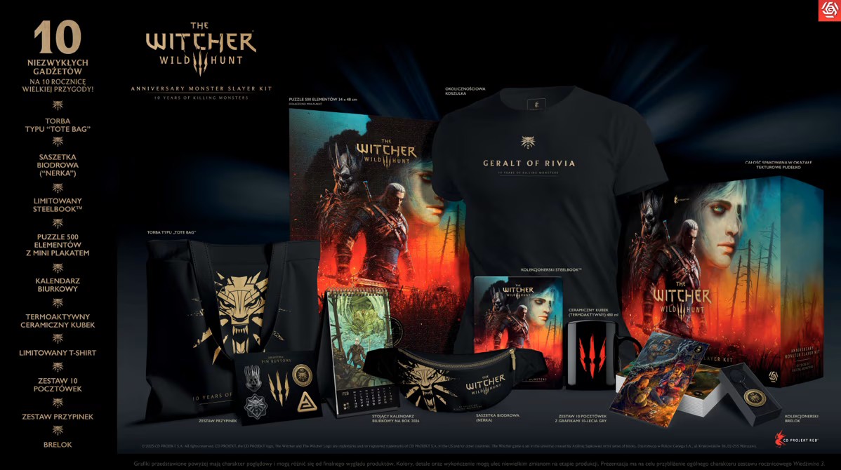 Wszystkie jubileuszowe produkty z okazji 10-lecia premiery gry Wiedźmin 3: Dziki Gon są już dostępne w przedsprzedaży. Ich oficjalna premiera odbędzie się 14 listopada.