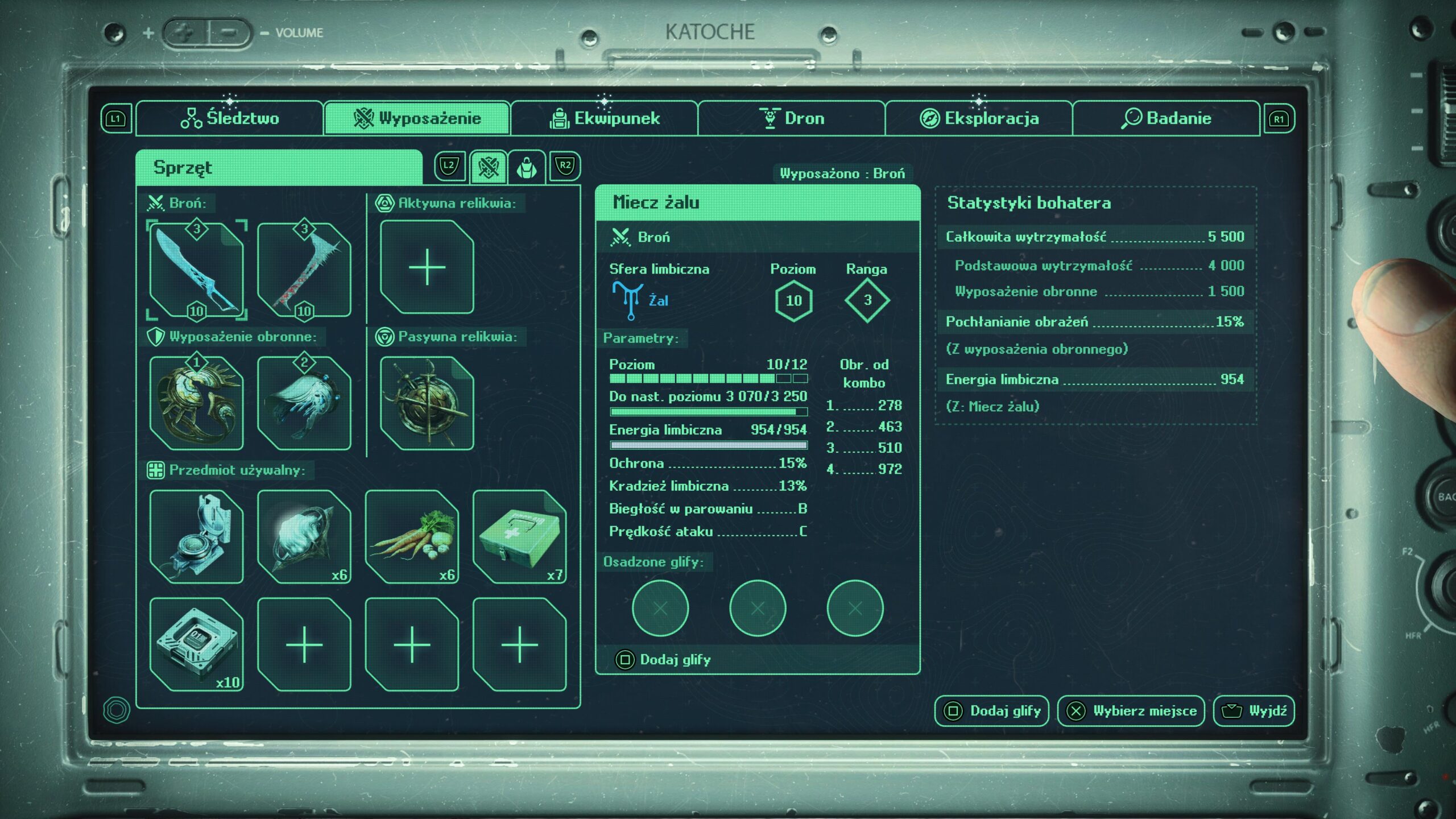 Oczywiście każdy moduł ma swój czas odnowienia, od jednej do nawet trzech minut. Jednak w świecie gry znajdziemy mostek do drona, to taka jakby bateria, która momentalnie skraca czas odnawiania wszystkich modułów o 90 sekund. Także nasz bohater może wyposażyć się w cztery moduły. Mogą to być dwie relikwie: pasywa i aktywna oraz dwa wyposażenia obronne. Przykładowo pierwsza relikwia, którą znalazłem, zwiększała mi o 200% obrażenia przy udanym parowaniu.
