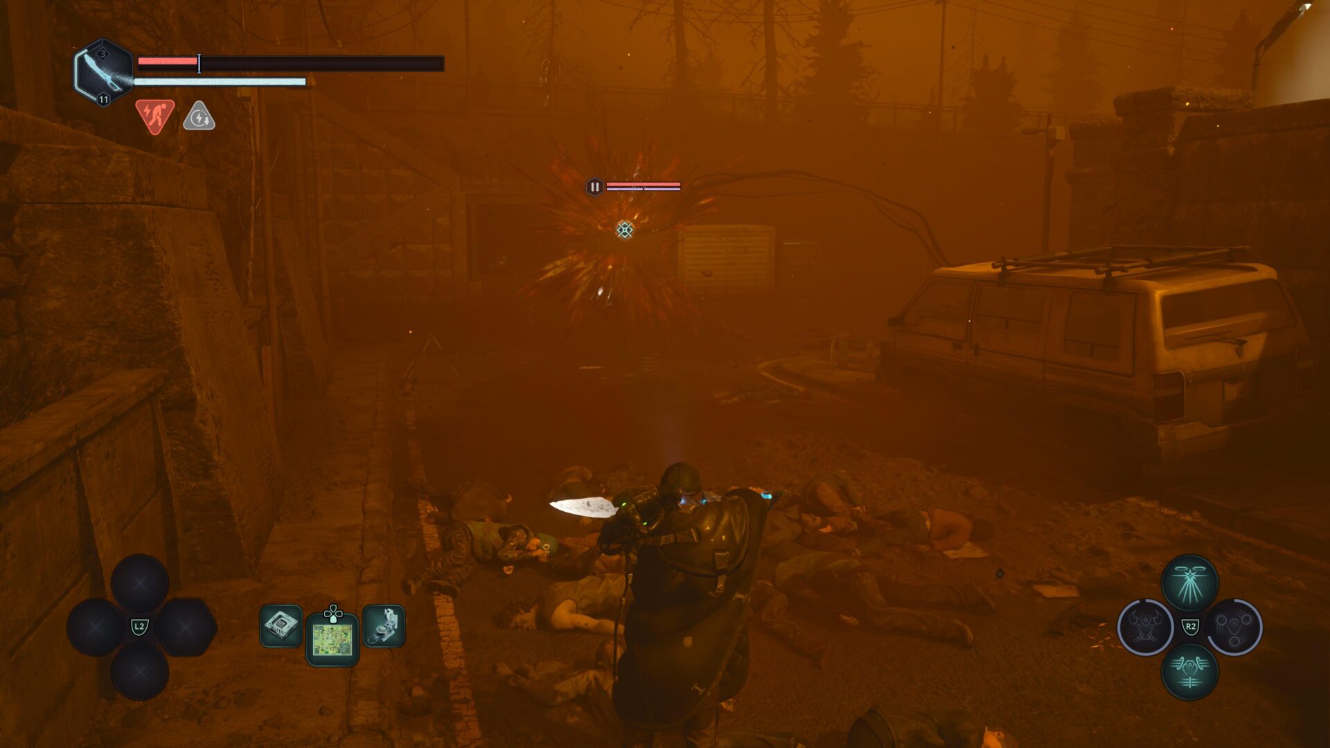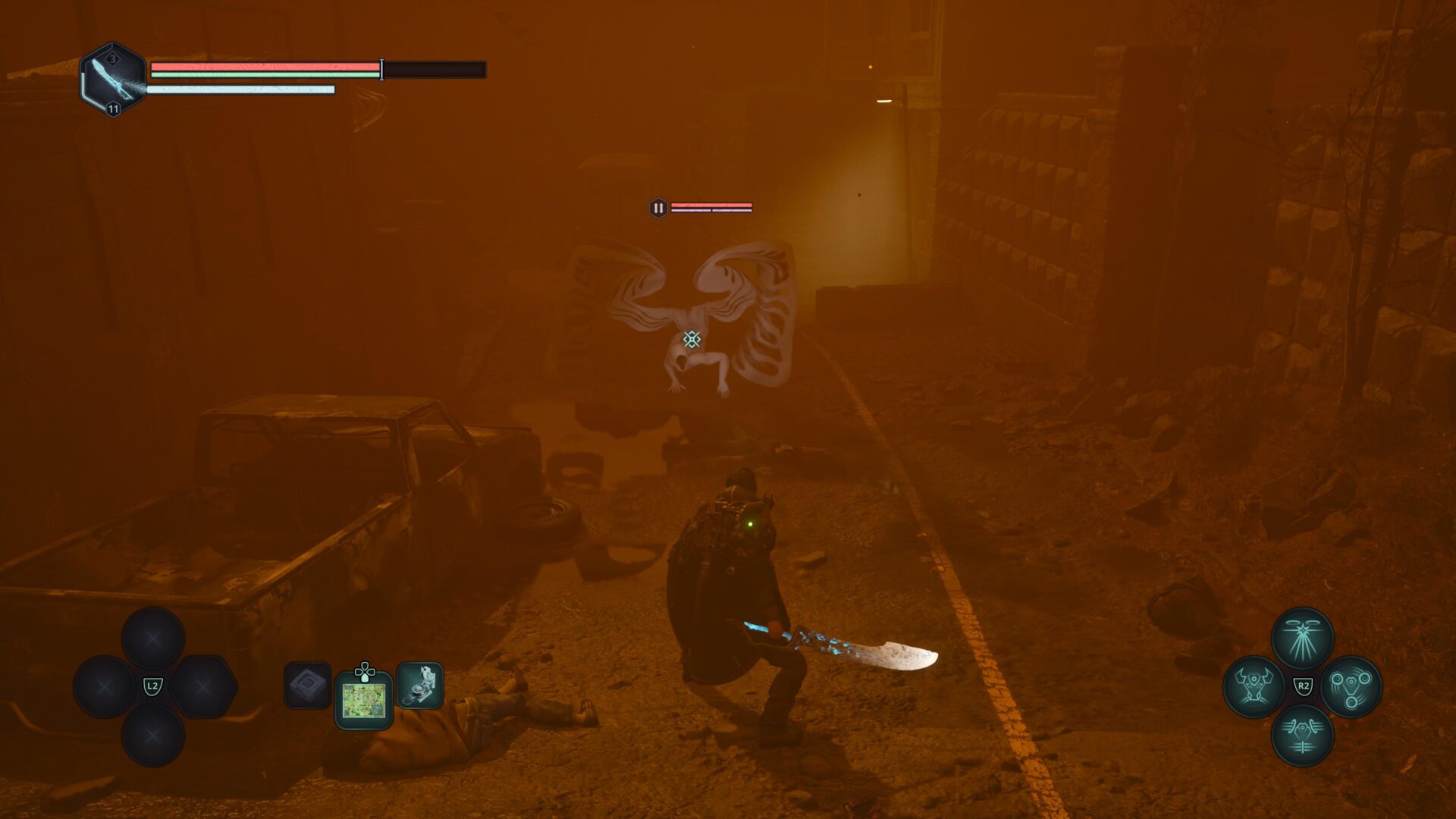 Oczywiście podstawą odnawiania życia są apteczki, jednak jest ich całkiem mało w świcie gry. Twórcy pomyśleli za to o bardzo fajnej mechanice odnawiania życia, która nazwali leczniczy puls. Zadając obrażenia przeciwnikom, zbieramy energię limbiczną, która nabija nam utracony pasek życia. Wokół naszej postaci pojawiają się blade cząstki, gdy stworzą pełny okrąg, to naciskamy R1, wtedy odzyskujemy zgromadzone HP. Jednak musimy uważać, każdy cios od przeciwnika całkowicie zabiera nam zgromadzoną energię. To z pewnością bardzo fajna mechanika, która mocno ogranicza nam korzystanie z apteczek, o ile oczywiście potrafimy dobrze walczyć i parować ataki.