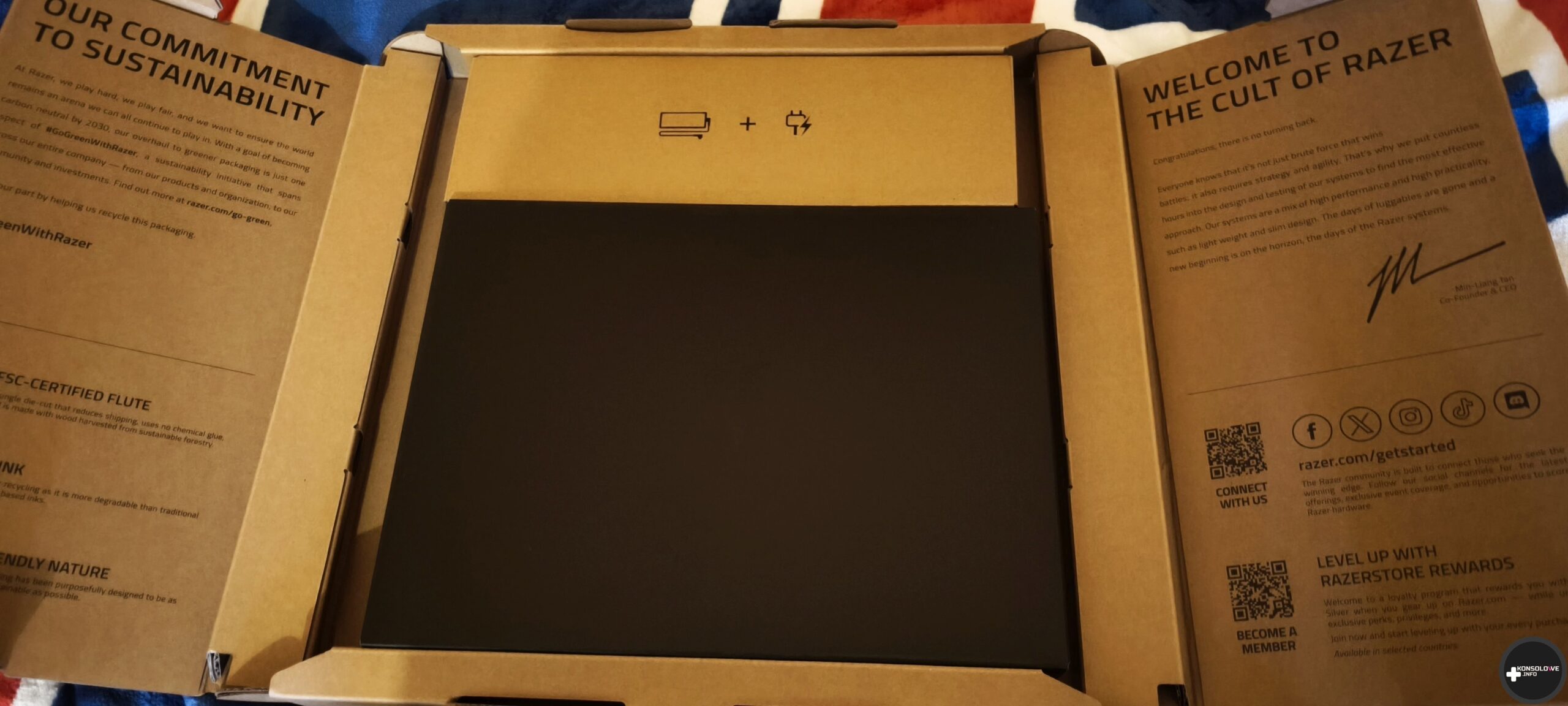 Sprzęt przychodzi zapakowany w dość niewielkich rozmiarów karton. Jego wymiary wynoszą bowiem 44 cm x 37 cm x 10 cm. Zaglądając do środka, znajdziemy naturalnie papierologię (choć na szczęście nie jest jej przesadnie dużo), potężny zasilacz oraz bohatera dzisiejszej recenzji. Laptop Razer Blade 14 jest dodatkowo zapakowany w materiałową „kopertę”. Nie należy jednak mieć złudzeń – absolutnie nie powinna ona być jedyną formą zabezpieczania laptopa podczas przenoszenia go. Wziąłem ten sprzęt na Gamescom i zapakowałem laptopa dodatkowo do specjalnej torby, a torbę tę umieściłem w plecaku, aby zadbać o jak najmniejszą szansę na uszkodzenie go. Przyznaję z satysfakcją, że bez szwanku wyszedł z podróży zarówno samolotem, jak i komunikacją miejską oraz przemierzania hal Koelnmesse podczas targów. O jakości wykonania laptopa napiszę jeszcze w dalszej części recenzji, natomiast teraz włączmy go i skupmy się na użytkowaniu komputera.