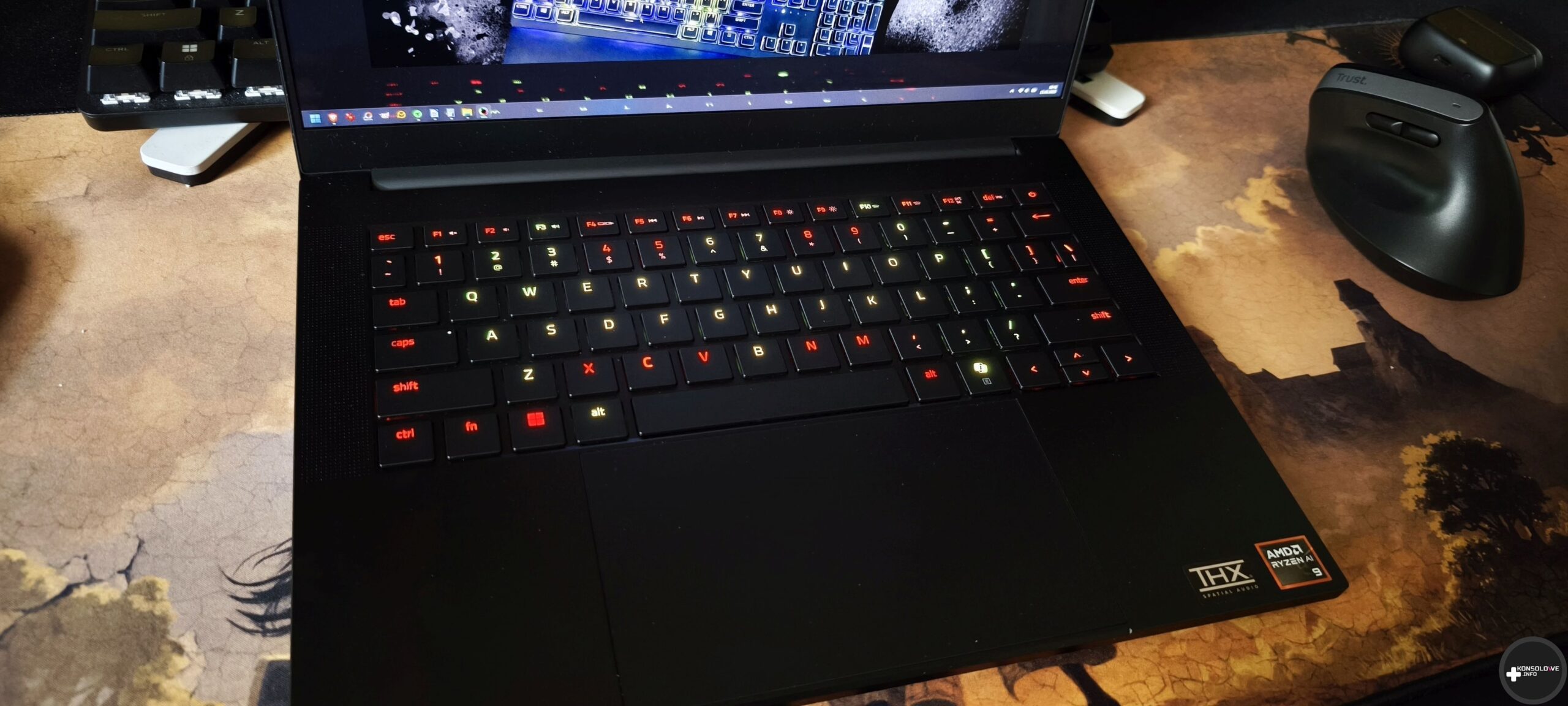 Na początku recenzji napisałem, że w opakowaniu z Razer Blade 14 znajdziemy między innymi potężny zasilacz. Na czym polega to potęga? Ano na tym, że ma aż 200 watów! Dzięki temu ładowanie baterii jest bardzo szybkie, ale na szczęście nie jest ona najmniejsza. Podczas standardowej pracy z internetem, obróbką grafiki, oglądaniem filmów oraz pisaniem artykułów mogłem liczyć na około 8 godzin pracy. Jest to w mojej ocenie jak najbardziej zadowalający wynik. Zwłaszcza, że na pokładzie znajdziemy kartę graficzną RTX 5070. Oczywiście taki czas pracy nie jest osiągalny kiedy będziemy grali w najbardziej wymagające tytuły.