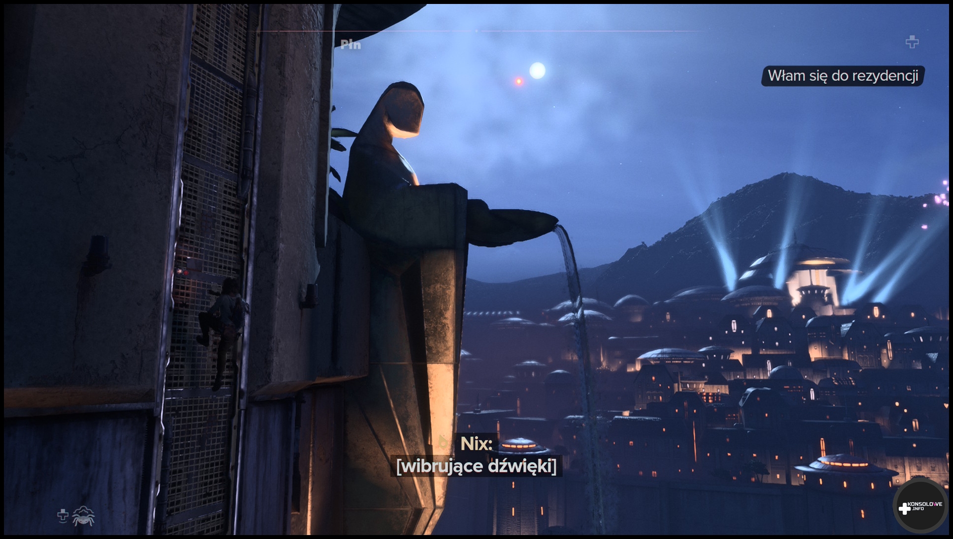 Bez wątpienia jedną z najważniejszych kwestii związanych z opisywaniem portu jest analiza strony wizualnej i spraw technicznych. Przyznaję, że bynajmniej nie byłem zachwycony pierwszymi materiałami promującymi Star Wars: Outlaws w wersji na Nintendo Switch 2. Zwiastun wyraźnie nie utrzymywał stabilnych 30 klatek i absolutnie nie zachwycał grafiką. Jakie było moje zaskoczenie, kiedy okazało się, że pełna wersja tego tytułu działa i wygląda naprawdę świetnie na Switchu 2. Nierzadko można zachwycić się wspaniałymi widokami – zwłaszcza kiedy kamera się oddali, a my przyjrzymy się światu z szerszej perspektywy. Warto tu wspomnieć, że w Star Wars: Outlaws występuje tryb fotograficzny, Nie zdziwię się jeśli będzie z niego regularnie korzystał niejeden gracz. Opuśćmy jednak tryb fotograficzny i wróćmy do opisu działania gry. Jego próbkę mogliście oglądać na mojej kompilacji kilku filmów.