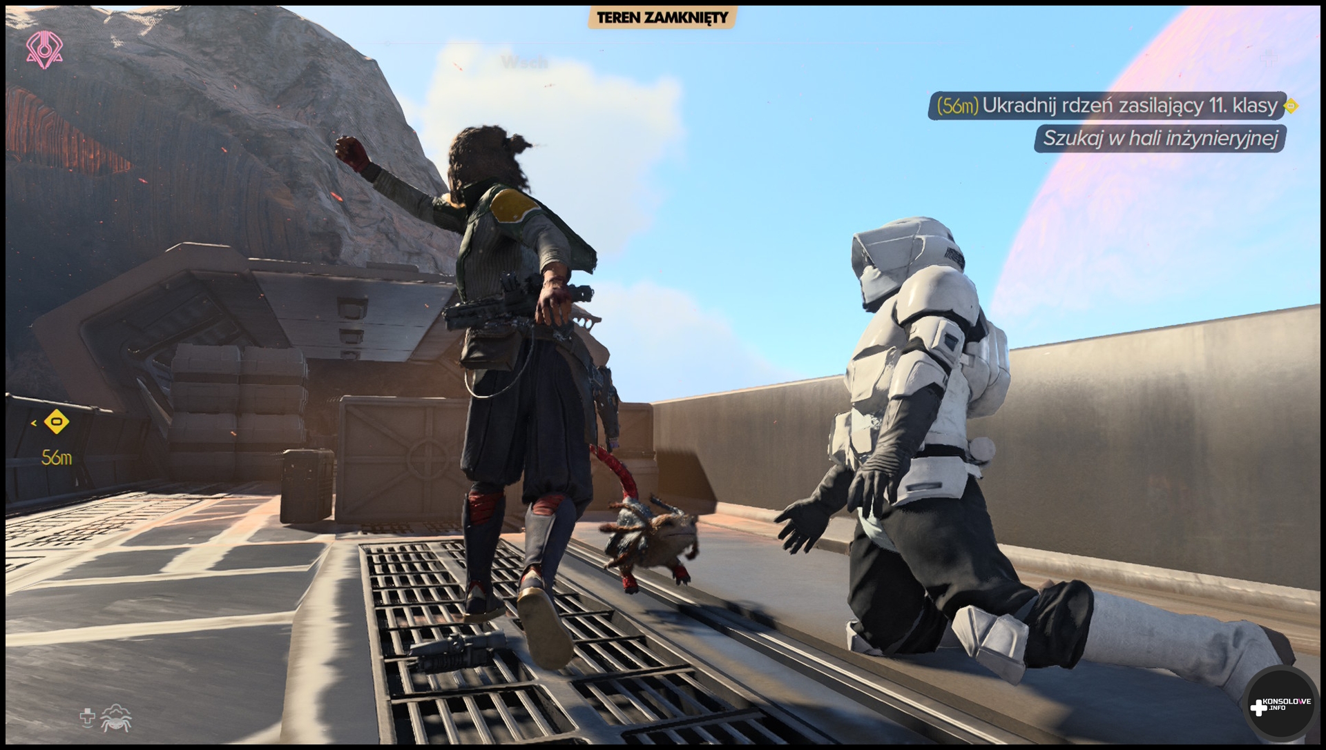 Kiedy moja żona spojrzała przez ramię, to szybko nawiązał się krótki dialog; „O, a to skakanie wygląda jak…” – „Prince of Persia?” – odpowiedziałem. Na co ona: „Nie, jak Asasyn”. Skojarzenia te są jak najbardziej zasadne. To przecież wszystko, tak samo zresztą jak Star Wars: Outlaws, gry Ubisoftu. Mimo zdecydowanie odmiennych realiów, rozgrywka jest bardzo zbliżona do stylu, jaki znamy z największych serii wspomnianego producenta. Przemierzając bardzo odległą galaktykę, sporo czasu poświęcimy na eksplorację. Nasza bohaterka, Kay Vess, jest młodą łotrzycą, która zamierza zdobyć największą sławę i bogactwa na Zewnętrznych Rubieżach. Odwiedzimy więc mnóstwo planet i interesujących miejsc. Znajdziemy w nich chociażby skrzynie i surowce, które przydadzą się do ulepszania naszych sprzętów oraz pojazdów.