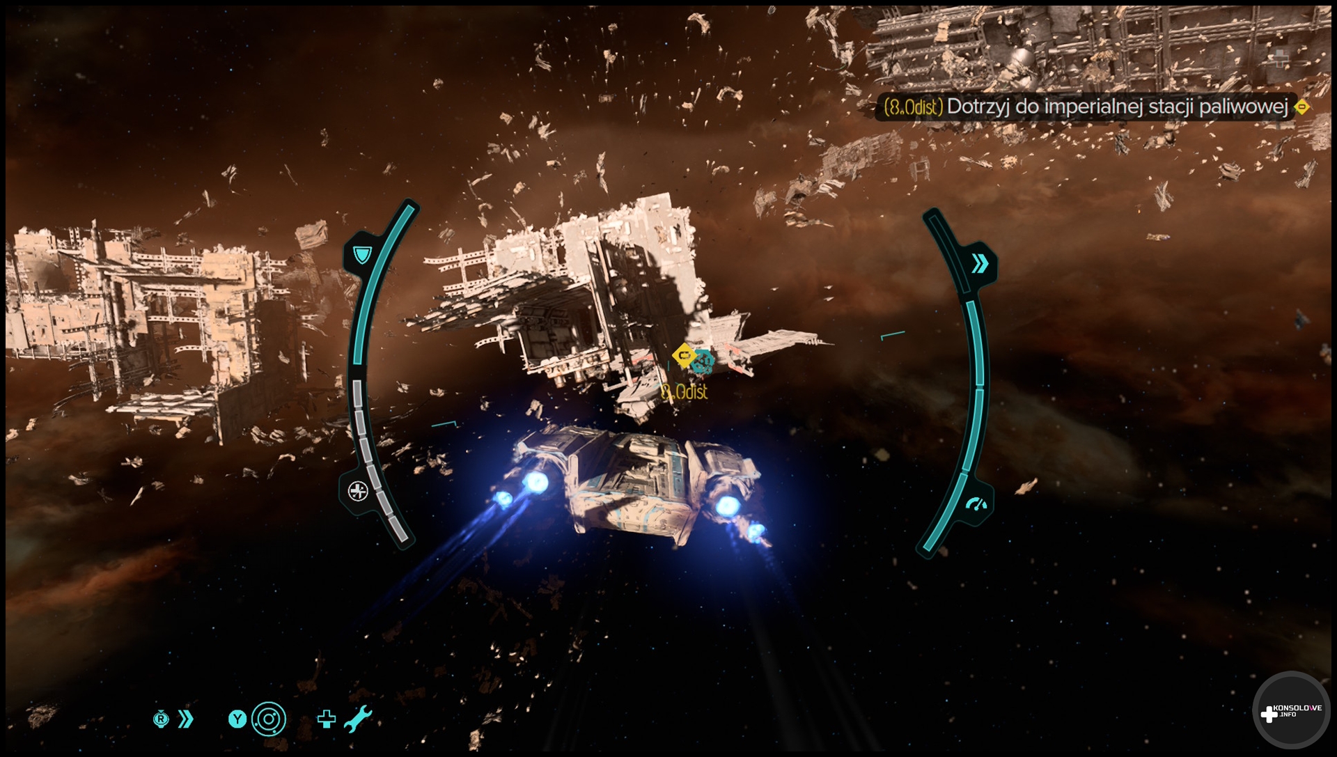 Nie brakuje również sterowania żyroskopowego, jeśli zdecydujemy się na włączenie go. Jeśli na to postawimy, to będziemy mogli poruszać konsolą lub Joy-Conem 2, aby dokładniej przycelować przed oddaniem strzału. Działa to dobrze, aczkolwiek muszę stwierdzić, że mimo wszystko ja nie jestem fanem tego rozwiązania i rzadko kiedy jestem z niego korzystam. Niemniej jednak jeśli Wy je doceniacie, to na pewno ucieszy Was obsługa żyroskopu w Star Wars: Outlaws na Nintendo Switch 2.
