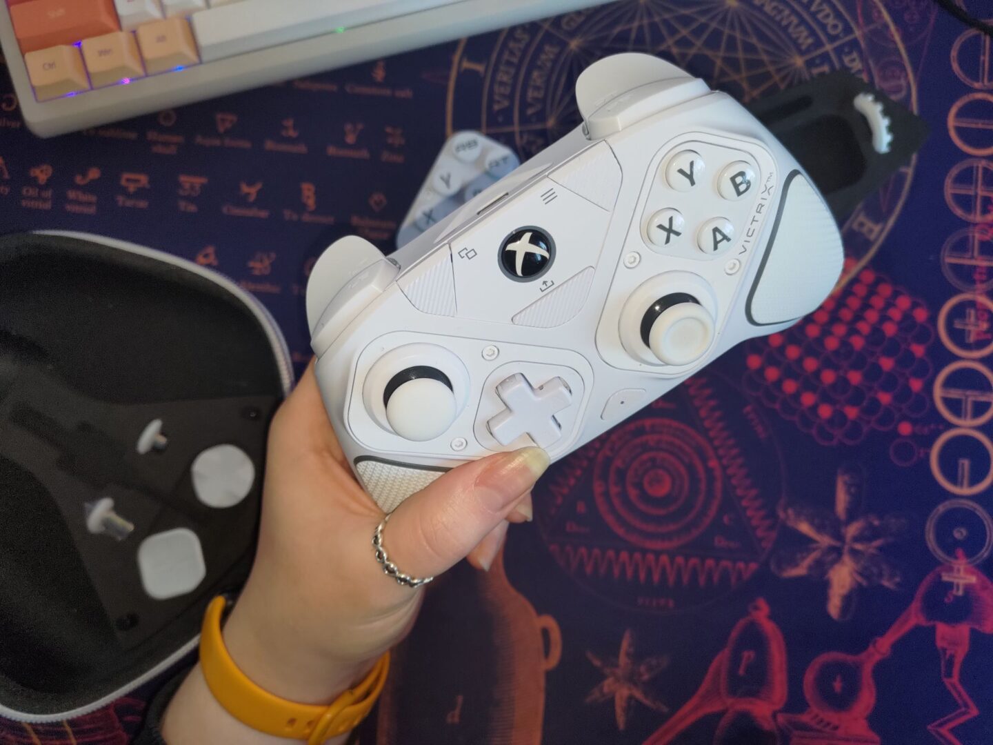 Jest to jednak pad, który oferuje naprawdę dużo, bardziej „mechanicznie” niż w oprogramowaniu. Blokady spustów są niezwykle przydatne, analogi sprawują się idealnie przy minimalnej deadzone’ie, a na baterii wytrzymuje on tyle, że zapomniecie go naładować. Na szczęście możecie wciąż grać „na kablu” oraz korzystać z kontrolera podczas jego ładowania!
