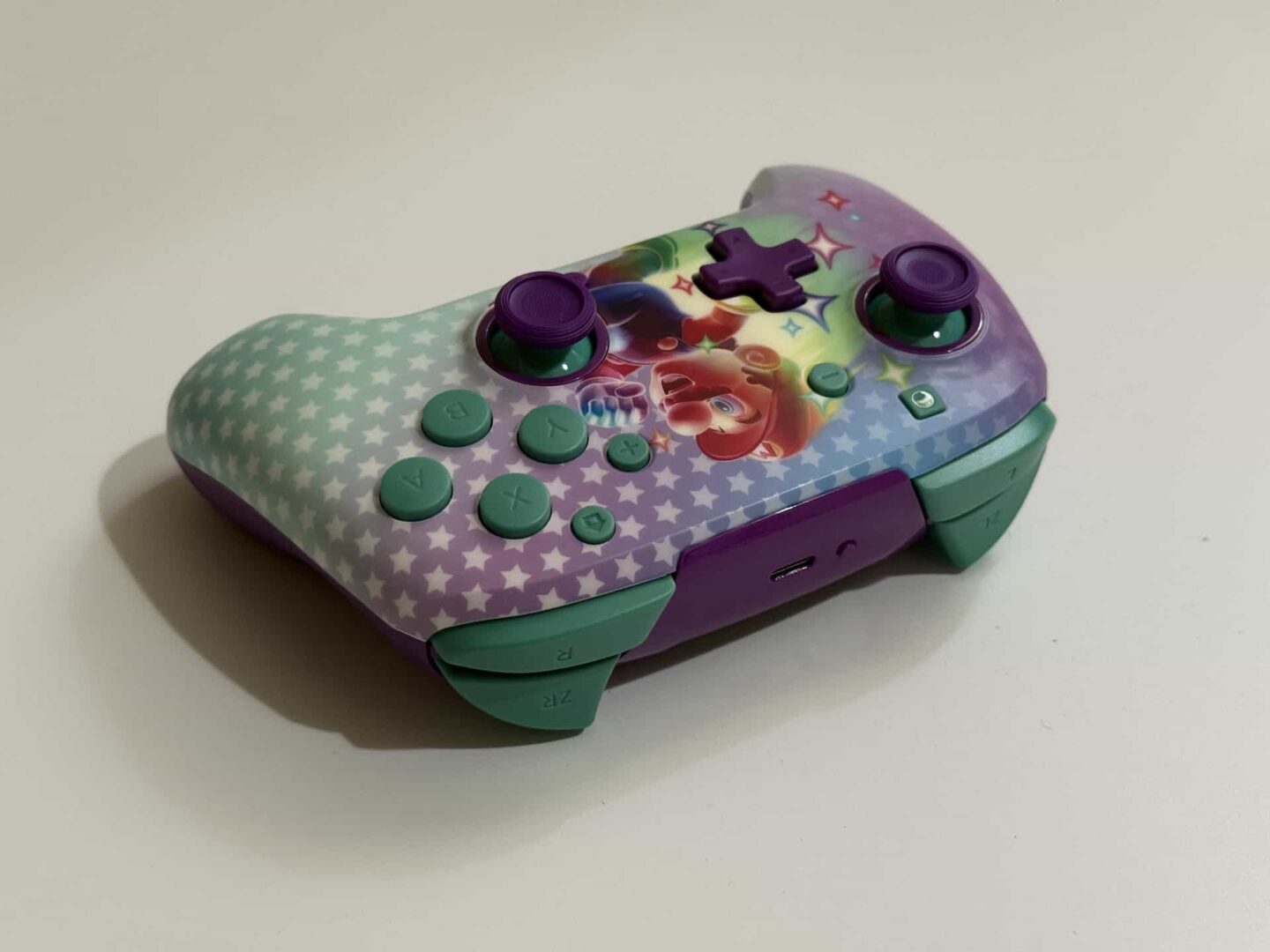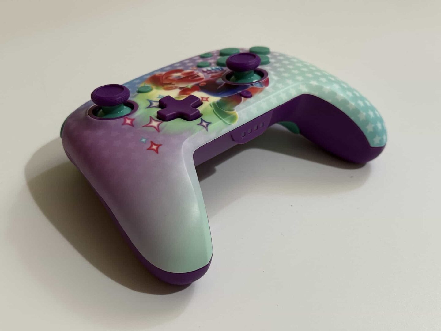 Rematch jest wykonany naprawdę solidnie. Nie jest to nic dziwnego – firma szczyci się, że pad został oficjalnie licencjonowany przez Nintendo. Plastik na froncie jest matowy i przyjemny w dotyku, a uchwyty na tyle są lekko chropowate, co wspomaga pewny chwyt podczas grania. Elementem wyróżniającym ten kontroler jest świecący w ciemności nadruk Mario na przednim plastiku. Nie wiem, czy z jego powodu warto dopłacać do pada, ale fani hydraulika-grzybiarza z pewnością będą zauroczeni.