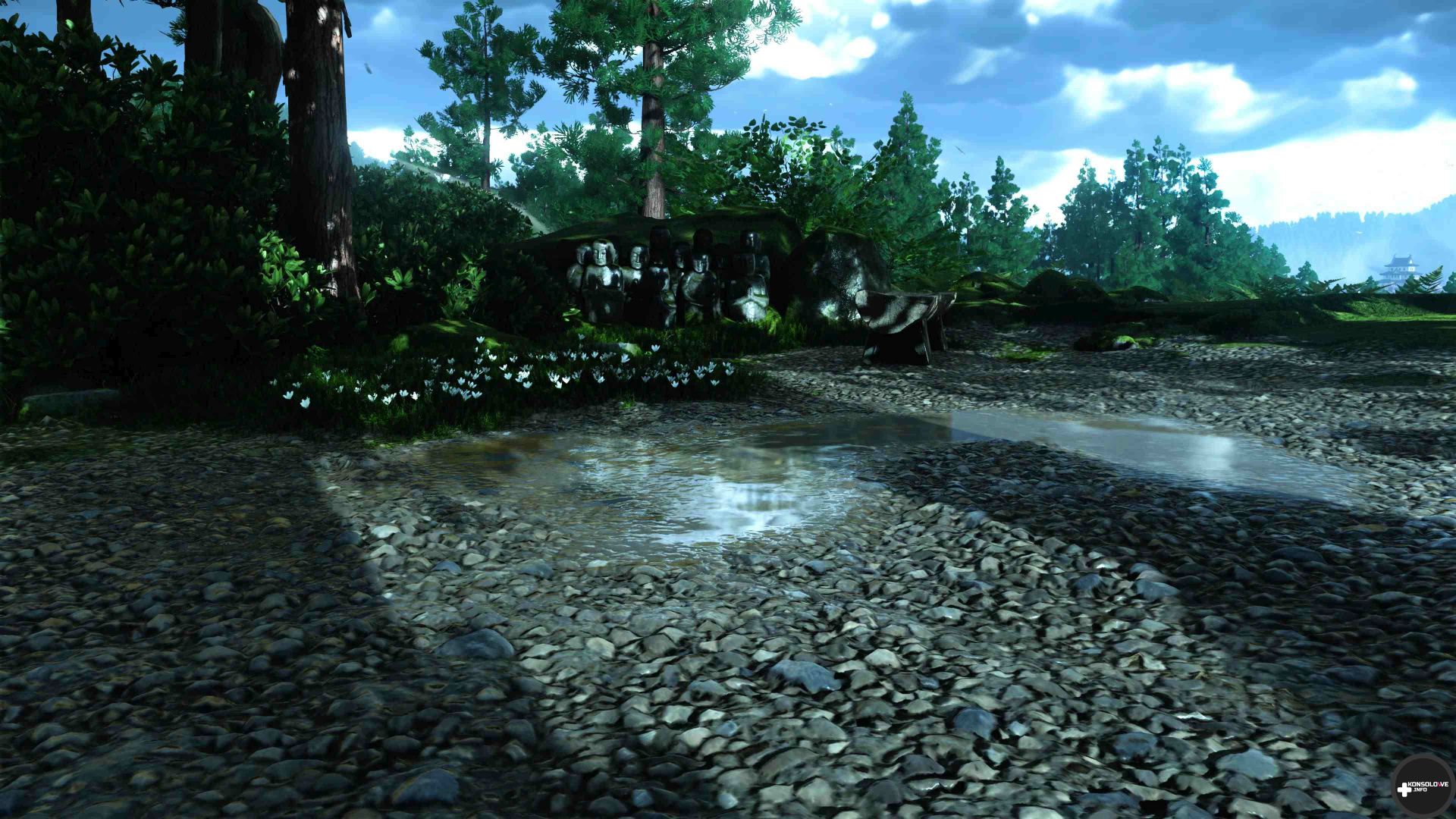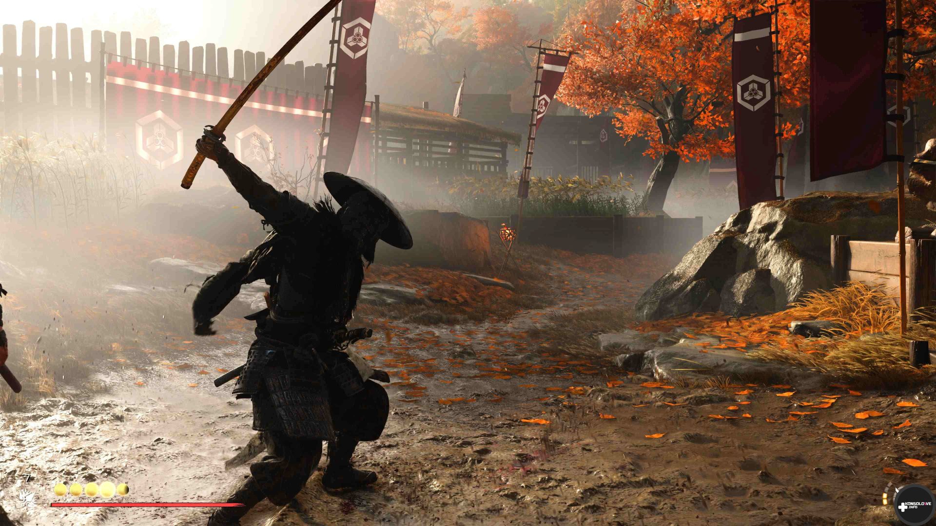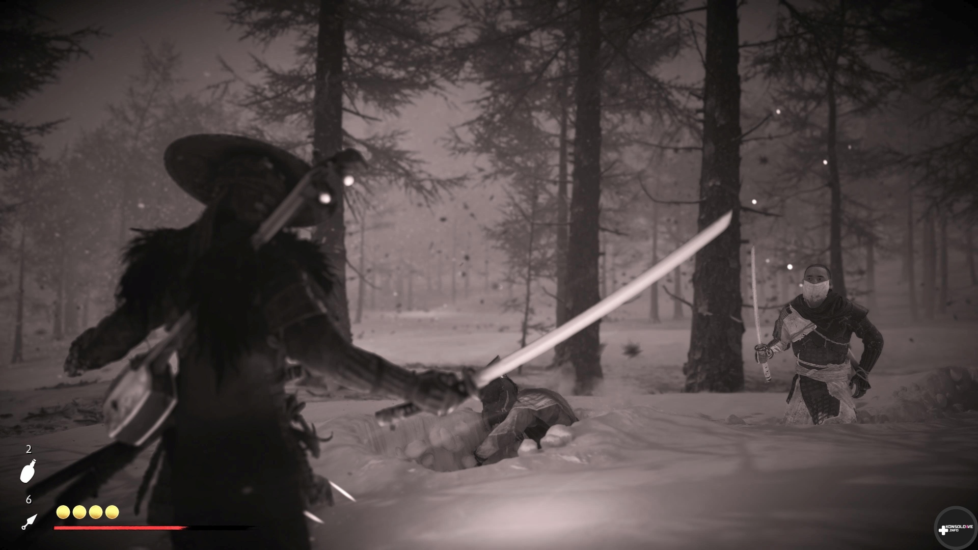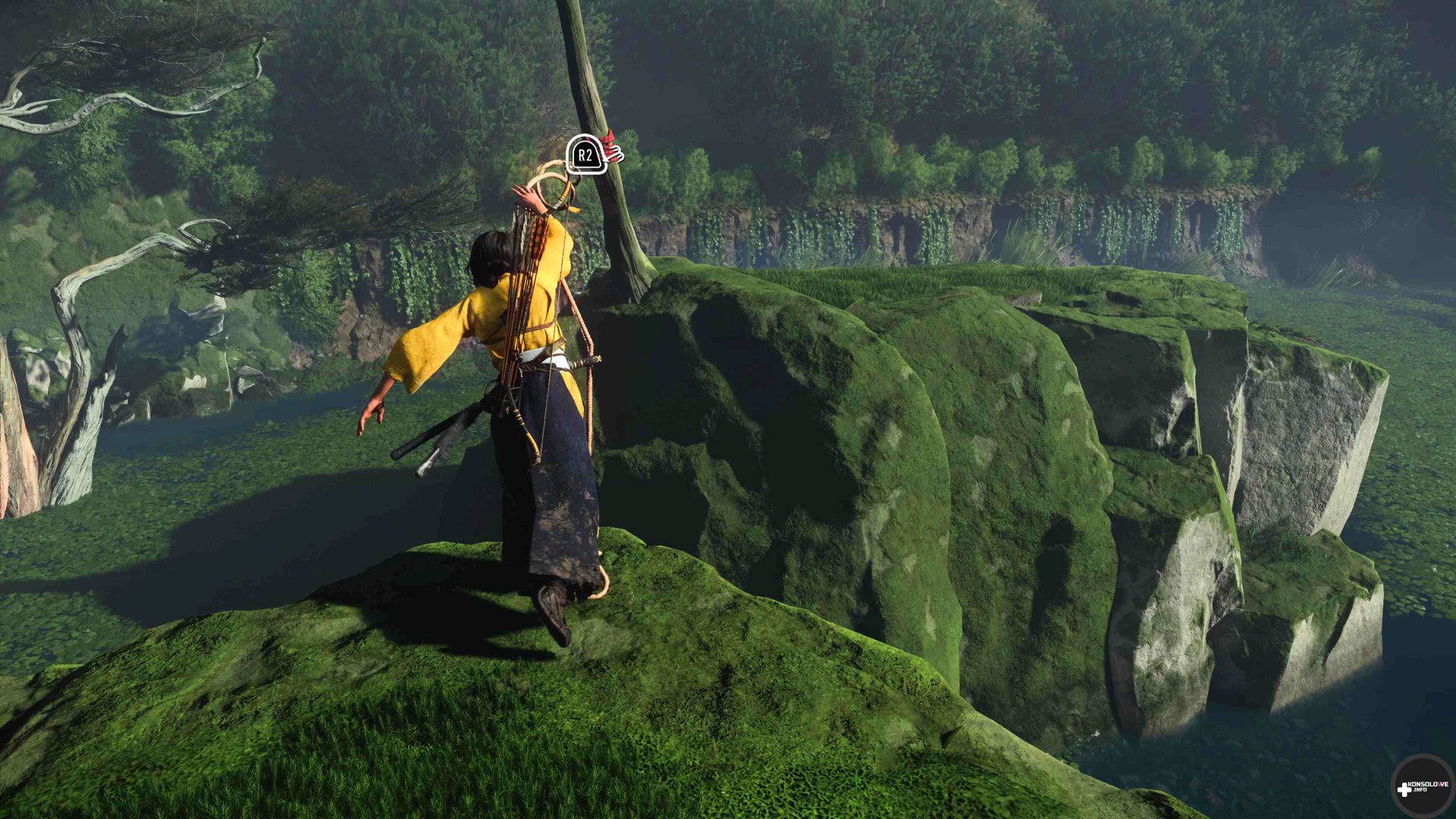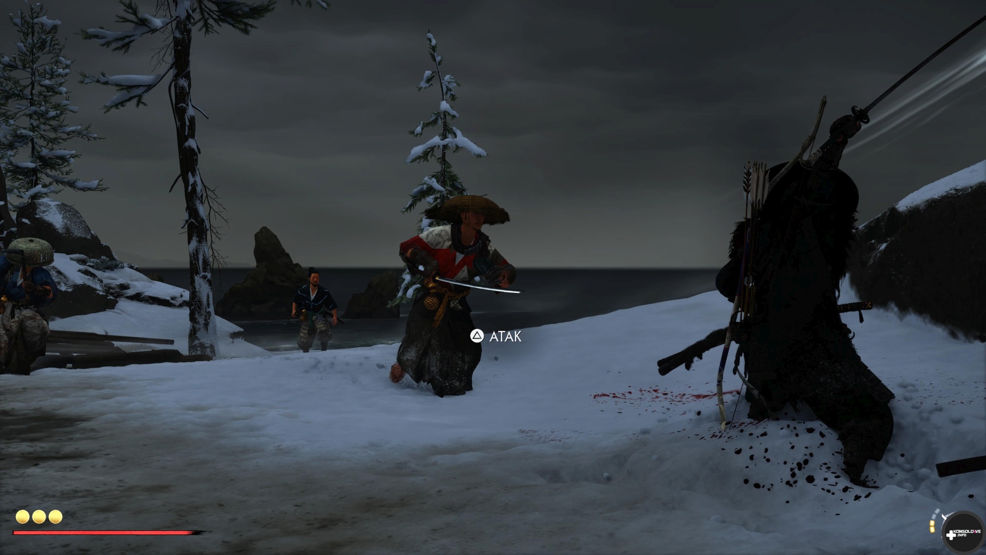 Należy jeszcze zaznaczyć, że im dalej zajdziemy w fabule, tym więcej pułapek znajdziemy na naszej drodze. Warto wspomnieć choćby o rozpostartej linie, przez którą może przewrócić się nasz koń jeśli nie przeskoczymy wcześniej nad przeszkodą. Jednak wierzchowiec to nie jedyny sposób na poznawanie Ezo. Nierzadko będziemy bowiem wspinali się po skałach za pomocą wyraźnie wyróżniających się elementów ścianki. Nie brakuje też specjalnej linki z hakiem, którą ma na wyposażeniu Atsu. Za jej pomocą nie tylko wespniemy się na wyżej położone miejsca, ale też przeskoczymy przez przepaść, zaczepiając się linką o wystającą gałąź lub przyciągniemy inną gałąź bliżej, aby móc następnie na nią wejść. Eksploracja nie jest trudna, aczkolwiek jest bardzo satysfakcjonująca.