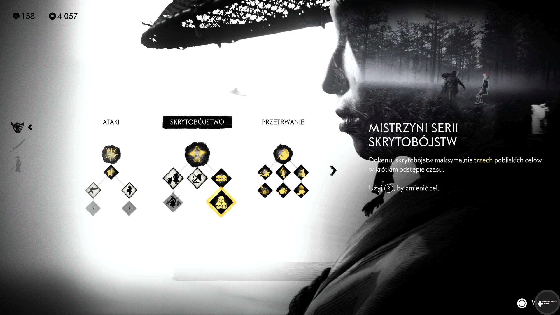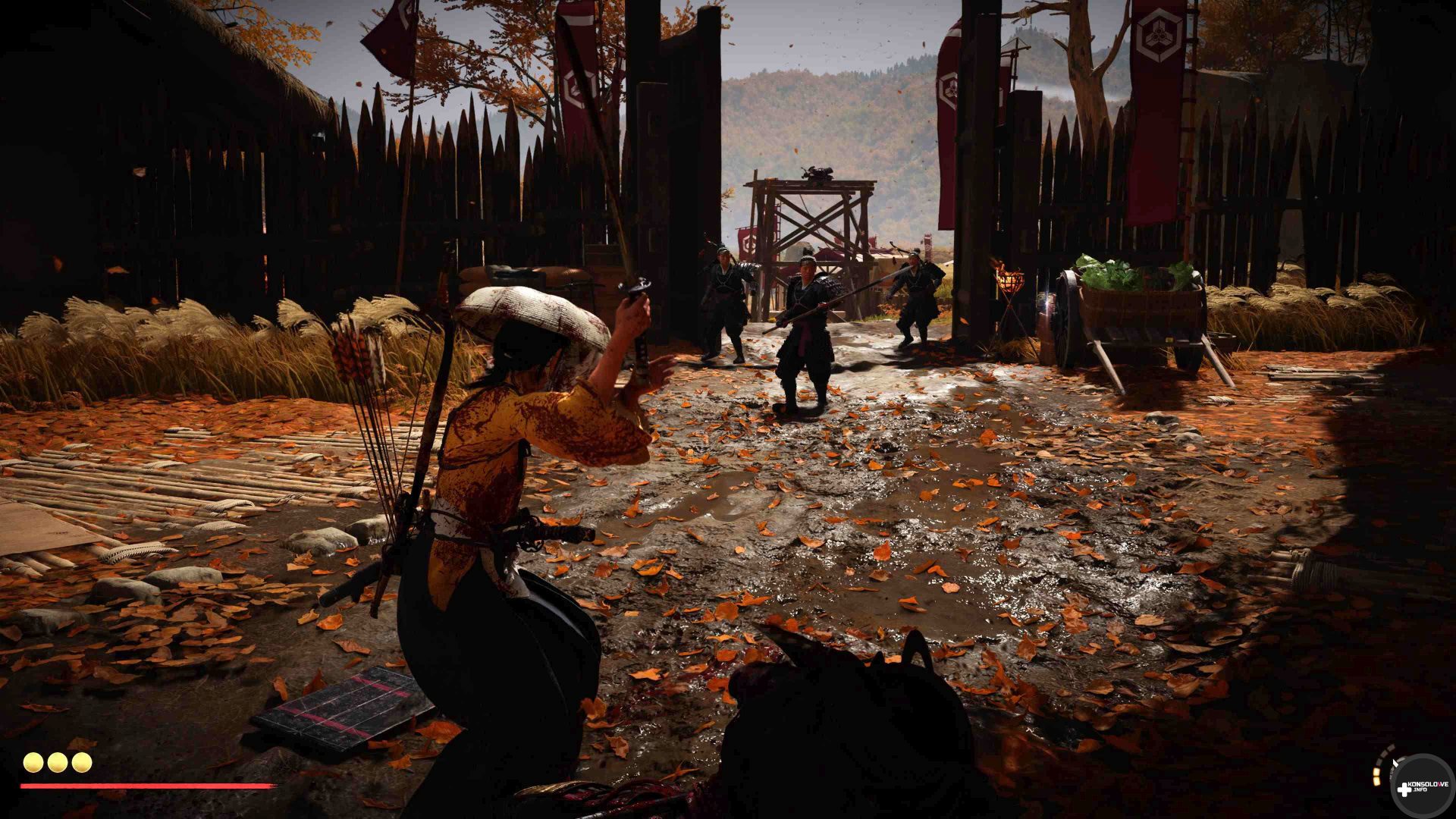 Z łuku korzystałem jednak często w dwóch przypadkach. Jednym z nich było naturalnie zdejmowanie przeciwników – najczęściej łuczników – na odległość, aby ułatwić sobie zdobywanie posterunku. Drugim przypadkiem było natomiast strzelenie w głowę wrogowi, który stał obok swojego kolegi. Wtedy tylko szybko dokonywałem skrytobójstwa na drugim nieprzyjacielu i de facto mogłem bezszelestnie pozbyć się dwóch. Warto jeszcze wspomnieć, że w drzewku rozwoju Atsu znajdziemy odpowiednie oznaczanie sylwetki przeciwnika jeśli zabicie go zaalarmuje jego kompana.