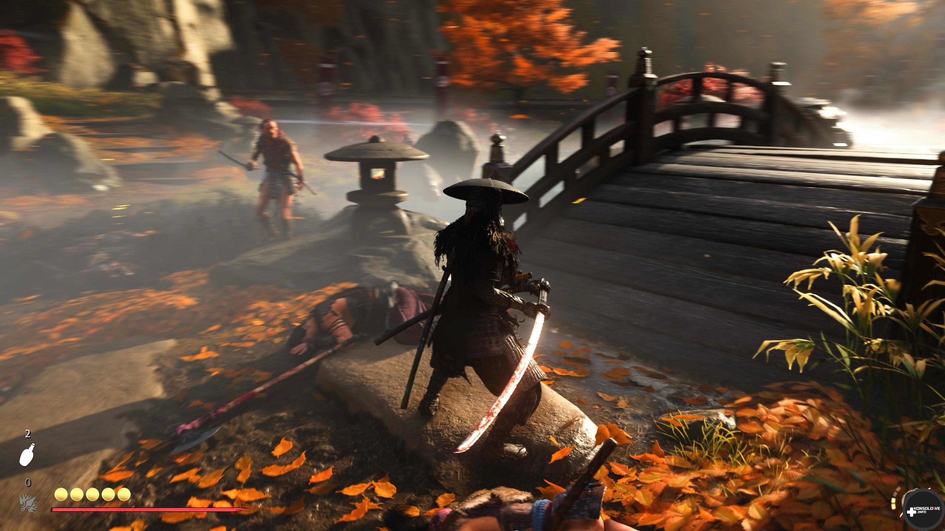 Podczas skradania się warto też podnosić puste dzbanki. O ile w otwartej walce przydają się do rzucania nimi w oponentów, co opisałem przy okazji referowania starć, o tyle użyteczne są również podczas przekradania się między wrogami. Dorze wymierzony rzut sprawi, że wróg pójdzie sprawdzić dźwięk tłuczonego dzbanka, co umożliwi nam albo uniknięcie tego nieprzyjaciela, albo ściągnięcie go w lepsze miejsce, gdzie bezpiecznie się go pozbędziemy. Atsu może też chować się w wysokiej trawie, aby unikać wzroku oponentów. Szkoda natomiast, że nie jest w stanie przykleić się do ściany i przenosić ciał powalonych oponentów. Na tym polu, jako skradanka, Assassin’s Creed Shadows jest zdecydowanie bardziej dopracowaną grą. Jeżeli więc zależy Wam przede wszystkim na cichych akcjach wykonywanych w Japonii, to jednak bardziej powinno się Wam spodobać dzieło Ubisoftu.